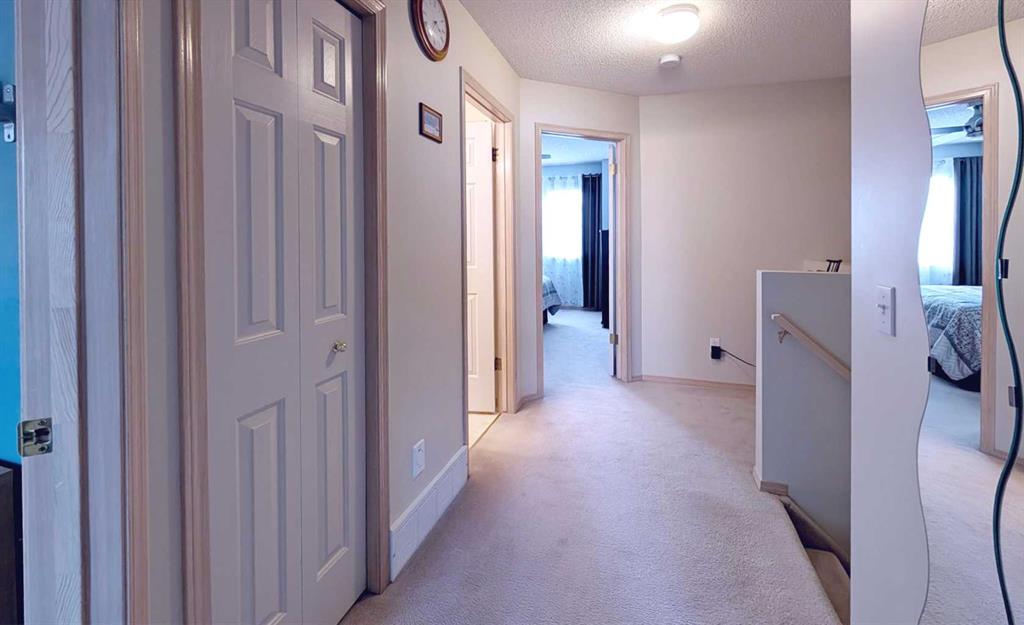 This beautifully maintained 3-bedroom, 2-bath townhouse in Shawnessy is move-in ready and offers exceptional value in a quiet, well-kept complex with no rear neighbors and serene views of green space. Located just minutes from playgrounds, schools, shopping, parks, restaurants, and transit—including the C-Train—this home combines convenience with tranquility. The spacious entrance opens into a bright living room with soaring 9' ceilings, large windows that flood the space with natural light, and a cozy tile-surround gas fireplace with a mantel. A few steps up, the dining area overlooks the private backyard and connects to a well-appointed kitchen featuring newer stainless steel appliances, ample cabinetry, and direct access to a generous deck surrounded by mature trees for added privacy. The fenced deck includes a built-in bench and BBQ area, perfect for entertaining. Upstairs, you'll find three comfortable bedrooms including a primary suite with a large walk-in closet, a full bathroom, and a versatile nook ideal for a small office or reading space. The basement offers plenty of storage along with laundry and utility rooms. Recent upgrades include new kitchen appliances, lighting fixtures, fresh paint throughout, newer windows, and new patio doors. The complex itself has seen improvements such as a new roof, updated exterior siding, and new porches. This unit comes with two parking stalls—one on your private driveway and another conveniently located across from the unit. With its exceptional cleanliness, thoughtful updates, and prime location, this home is a rare find you won’t want to miss.