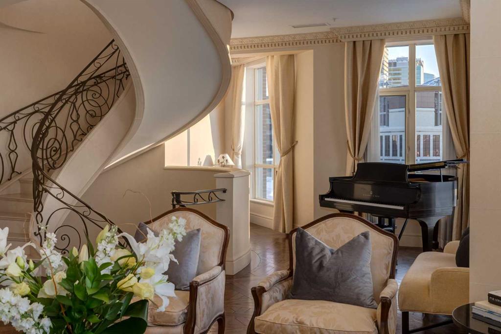 ICONIC BUILDING. ICONIC RESIDENCE. EXCLUSIVE LOCATION. THREE-LEVEL PENTHOUSE. Located on the beautiful Bow River and across from Prince’s Island Park, the PRINCETON offers exceptional luxury condominium living with full concierge service. One of Calgary’s most distinguished addresses, the PRINCETON development is home to many famous residents that have chosen this special community to reside. Owned by the “Hotchkiss Family Estate”, this magnificent property will NEVER BE REPLICATED. The property was architecturally designed by Gibbs Gage Architects in conjunction with interior design curated by the late Arthur Fishman. This is a once-in-a-lifetime opportunity to live in the “pinnacle” PENTHOUSE suite, ideally positioned on the southwest side of the top three floors of this premier address. Direct elevator to suite access for two of the three floors. Magnificent oval marble staircase. Wood-burning Whilshire fireplace. Sherle Wagner gold fixtures. Versaille Parquet hardwood flooring. Grand French granite balconies. Featuring over 5500 square feet of OPULENT interior and exterior living space, this property is sure to impress the most discriminating buyer. The millwork detailing, interior design elements, and furnishings are modelled after “Chateau de Versailles”. Please call to arrange for your private viewing of this incredible offering. For detailed information, please click onto the brochure link.