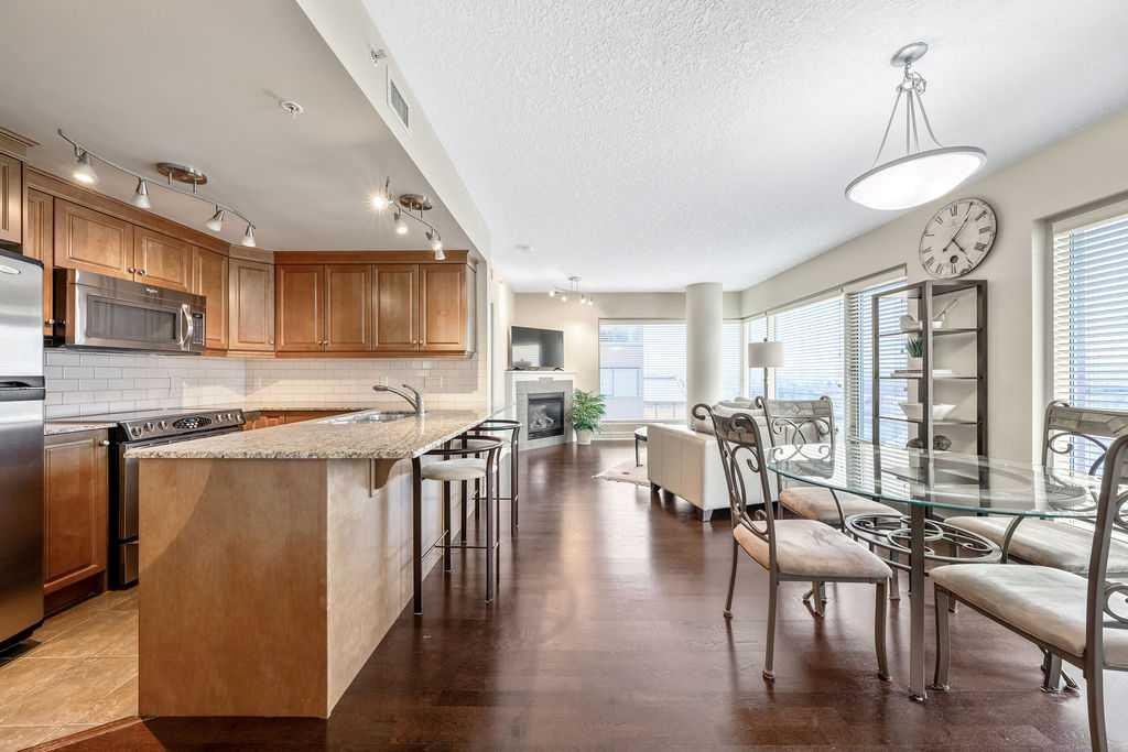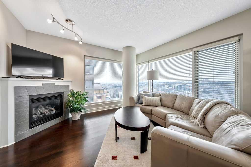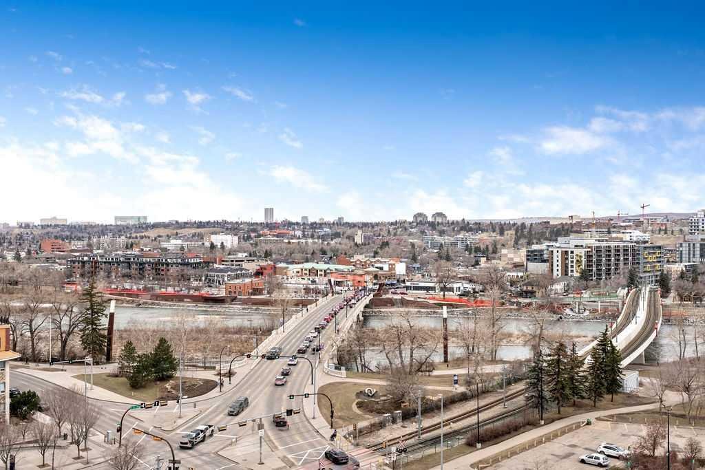 Wake up to sweeping river views and unwind above the city skyline—this is downtown living at its most effortless. Perched on the 12th floor of Five West Phase I, this fully furnished executive suite offers a rare blend of comfort, convenience, and iconic north & west-facing vistas stretching from the Bow River and Peace Bridge to Kensington and beyond to COP. Designed with both style and function in mind, the open-concept layout is framed by floor-to-ceiling windows, allowing natural light to pour through the space while showcasing the surrounding cityscape. Engineered hardwood flooring adds warmth and continuity throughout the main living areas. Step outside to your private balcony, complete with a natural gas line for BBQ, where the views become part of your everyday routine. Morning coffee, evening sunsets, and the energy of the city below all come together in this inviting outdoor extension of the home.