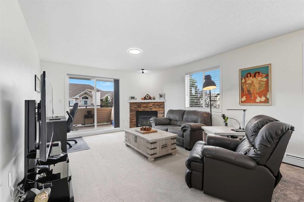 Set in the desirable Springbank area, this corner unit, updated 2-bedroom, 2-bathroom condo delivers an ideal balance of style, comfort, and everyday practicality. Offering over 1,100 sq. ft. of living space, this home has been thoughtfully improved with both recent and past upgrades that ensure it feels fresh, modern, and move-in ready. The spacious, open-concept layout allows for an effortless flow between living, dining, and kitchen spaces. A corner gas fireplace and baseboard heaters create a warm and welcoming atmosphere, while the south-facing balcony draws in abundant natural light. Measuring an impressive 12' x 9'7" , the covered balcony is an inviting retreat for outdoor dining or relaxing in the sun. Equipped with a gas BBQ hookup and a storage room, it extends your living space and enhances functionality. The kitchen has seen stylish updates over the past year, including a new countertop, along with a new fridge and microwave range hood fan combo added just last month. Complemented by modern lighting, and a convenient breakfast bar, the kitchen is both practical and appealing. Every room in the unit has been freshly painted, adding to the bright, clean feel. The primary bedroom is a private retreat featuring a walk-in closet and a full ensuite complete with soaker tub and separate shower. The second bedroom is thoughtfully positioned on the opposite side of the unit, offering privacy for guests or family, with a second full bathroom close by. Additional highlights include newer carpeting, updated light fixtures, and fresh details throughout, making the space feel current and well cared for. This property also comes with 2 titled underground parking stalls, an extra storage locker, and access to a secured bike storage room in the parkade. The building itself is well-constructed with a mix of stone and vinyl siding, supported by a durable wood frame, and has been well maintained by a diligent condo board. With quick access to major roadways and the new Ring Road, commuting is straightforward, and the location offers excellent proximity to both city amenities and mountain getaways. This is a fantastic opportunity to own a spacious, upgraded condo in a well-run complex — one that combines convenience, value, and lifestyle. Arrange your showing today and see why this home stands out.
