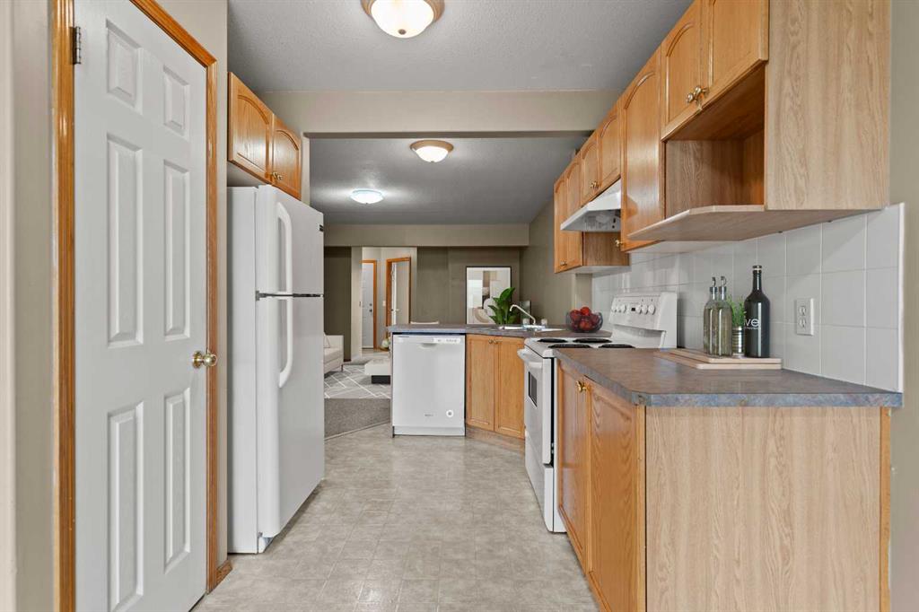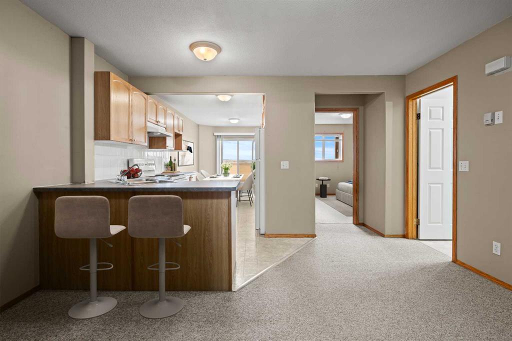 2 BEDROOMS | 1 BATHROOM | 872 SQFT | OPEN LAYOUT | DECK | BACKING ONTO GREEN SPACE | PARKING STALL | Welcome to this starter home, perfect for a first time home buyer or to purchase as an investment property. Upon entering , you are greeted with an abundance of natural light and an open floor plan. The spacious living room opens into an inviting kitchen, then connecting to a dining room that opens onto a generous deck overlooking a green space with no neighbours behind you. This home comes complete with 2 bedrooms, a 4-piece bathroom, in-suite laundry and a parking stall directly outside your front door. This complex is very well managed and is close to downtown, shopping, a golf course and has easy access to major road ways. This great opportunity won't last long. Book your showing today and don't miss out! Photos have been virtually staged.