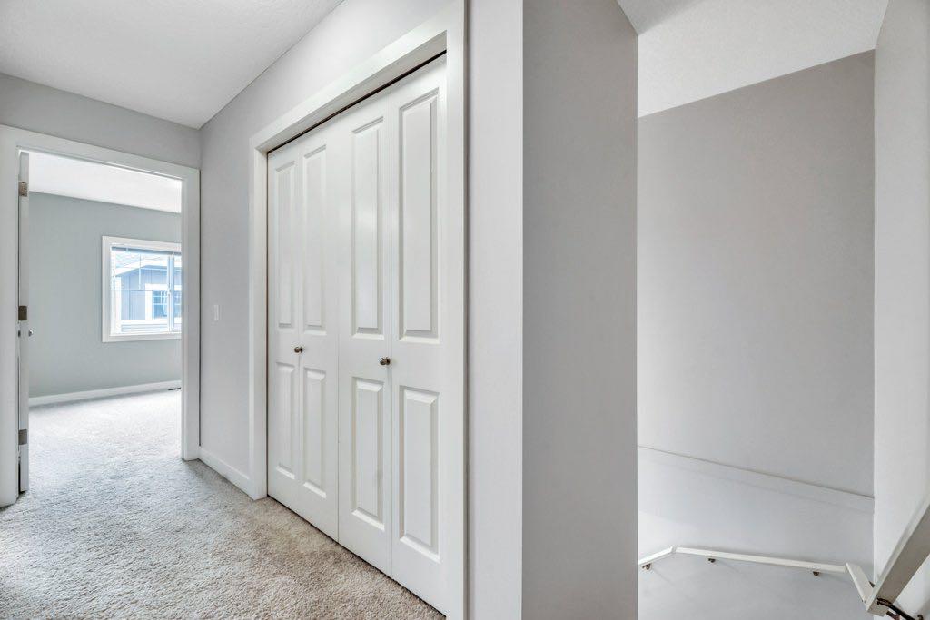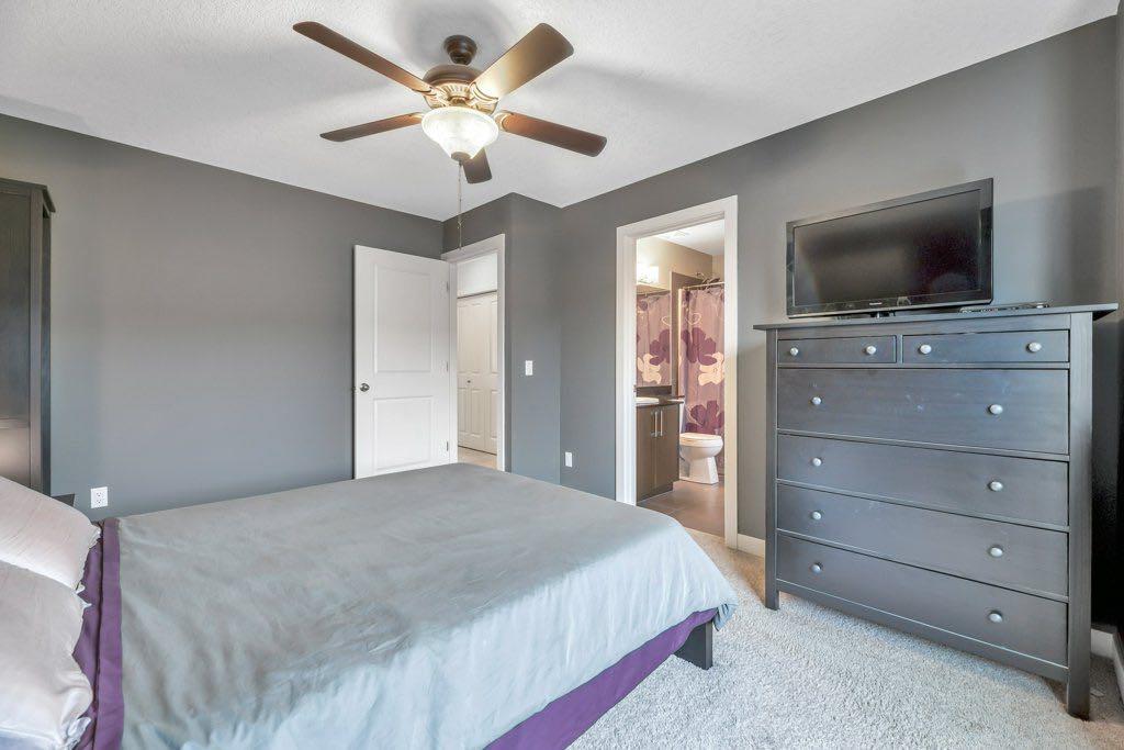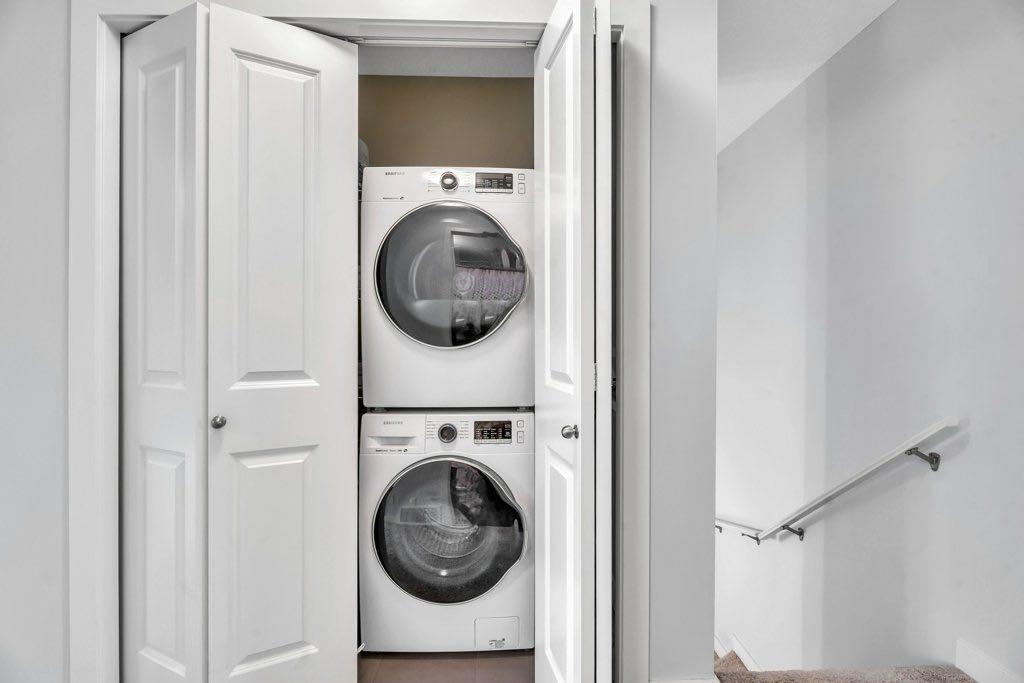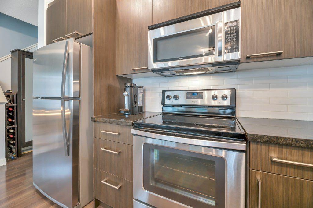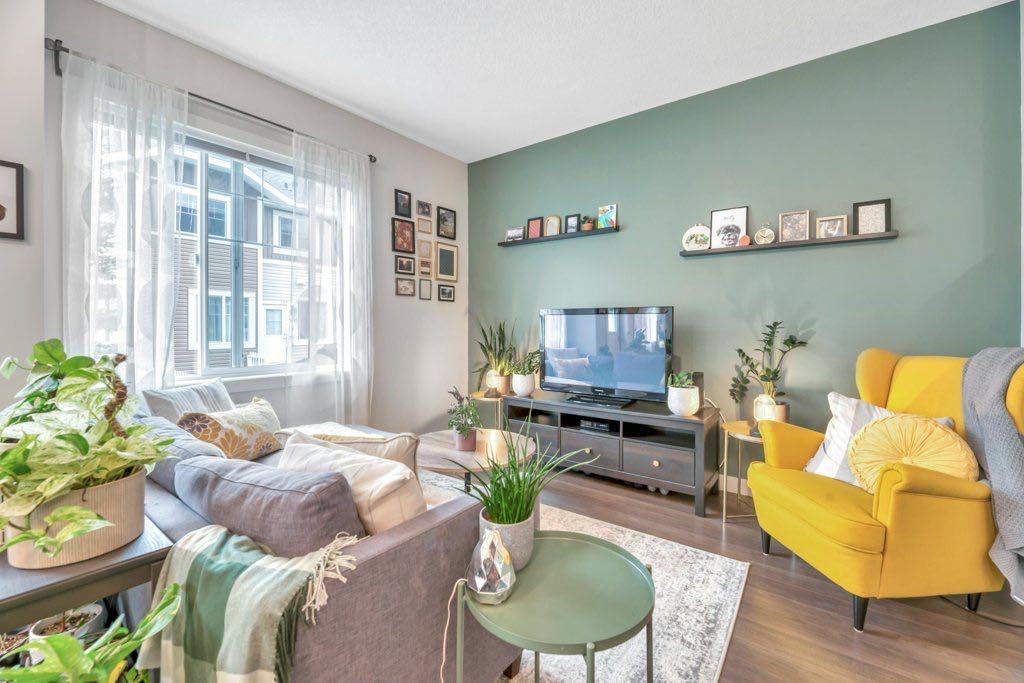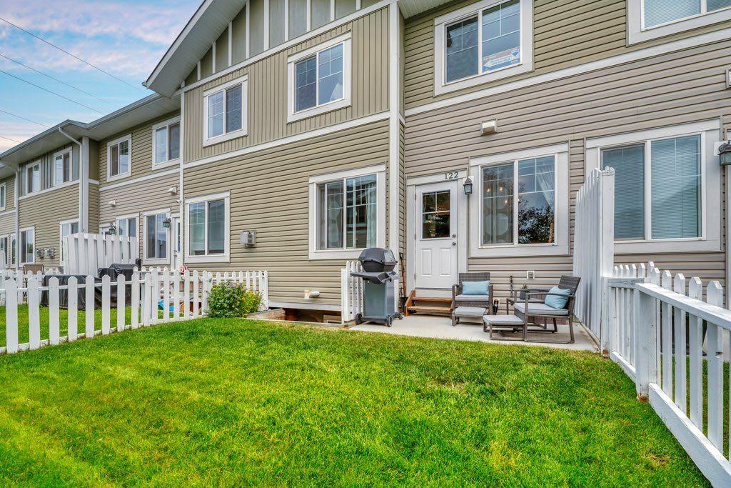 This is the one! This immaculate one owner townhome is one of only a handful of units in popular Chestermere Station with a fenced yard and full basement. You can’t beat this location with so many of Chestermere’s amenities just steps from your front door. Walk to shopping, restaurants, bars, gyms, the library and of course the lake, beach and the many picturesque parks and pathways that Westmere has to offer including an off leash dog park. The cute little covered front porch provides a touch of charm. Step into the spacious tiled front entryway with closet and a 2 pc powder room which is nicely tucked away from the main living space. Up just a couple of steps is your spacious and sunny open concept living space. The modern kitchen is well equipped with wood grain European style cabinetry, stainless steel appliances, subway tile backsplash and granite counters. Between the kitchen & dining area is a counter height peninsula with extra seating where family & guests will love to gather. You can conveniently access your back patio from the bright and cheery dining area allowing for easy BBQing year round. Other thoughtful upgrades you’ll appreciate include durable and easy care laminate flooring plus 9’ ceilings with knock down finish. Upstairs you’ll find 3 nice sized bedrooms including the primary bedroom complete with a 3 pc ensuite and huge walk in closet that even has a window. The other 2 bedrooms share the main bath with a tub which is a must have for any little ones. Upstairs laundry is another convenience you are going to love. This unit comes with a rare full basement that is ready for you to develop to suit your needs. A big window provides lots of light and means you can add a 4th bedroom if it suits your needs. The spacious yard is fenced making it perfect for kids or pets and it backs onto a grove of mature trees making this one of the most desirable locations in the community. Your fur babies are welcome in this pet friendly with board approval complex, but there’s no need to bring your shovel since snow removal and ground maintenance is included. You are going to love living here.
