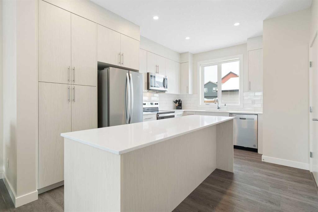 Welcome to your new home in the vibrant and growing community of Homestead in NE Calgary! If you’ve been dreaming of homeownership with the right blend of style, comfort, and convenience—this is it. Step inside this beautifully maintained NO-CONDO-FEE, end unit townhouse and you’ll immediately notice the inviting open-concept layout that makes the space feel light, airy, and welcoming. Whether you're hosting friends for dinner or just enjoying a quiet night in, the seamless flow from the kitchen through the dining area to the living room creates the ideal setup for modern living. The kitchen is a standout feature, complete with a large center island topped with sleek quartz counters, stainless steel appliances, and plenty of cabinet and counter space for all your cooking needs. It opens right into the dining and living areas, so you’ll never feel cut off while entertaining or watching your favorite show while making dinner. Just off the main level, you’ll find the fully fenced backyard - offering just the right amount of outdoor space for container gardening or relaxing in the sun. Upstairs, you’ll find three generous bedrooms, including a primary retreat with a walk-in closet and a private 4-piece ensuite. A second 4-piece bathroom and convenient laundry room complete the upper floor, making daily routines a breeze. The basement currently offers extra storage space but has loads of potential to be developed to feature a rec room, a home gym, or an office. This home comes with a tankless hot water system, plus a double detached garage. You’re also in a prime location, walking distance to future playgrounds, playing fields, schools, shops, transit and much more. Plus, with easy access to Stoney Trail, McKnight Blvd, Country Hills Blvd and Airport Trail, commuting or getting around the city couldn’t be more convenient. If you are looking for a move-in ready home that combines functionality, comfort, and lifestyle—this one checks all the boxes. Come see what life in Homestead has to offer. You’re going to love it here!