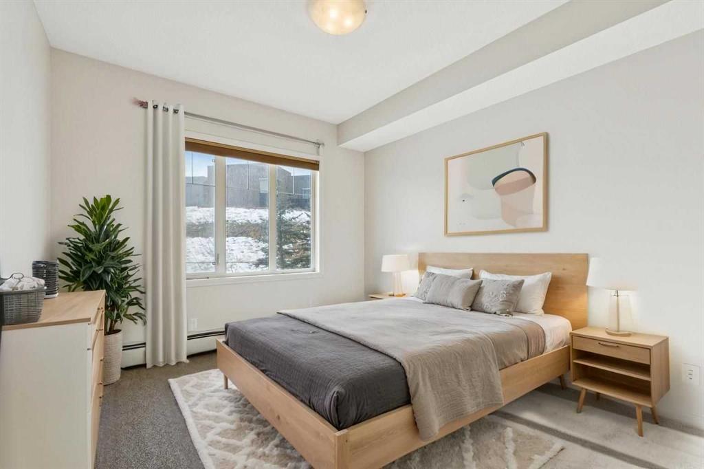 Filled with lots of natural light, while being modern & highly functional, this spacious & thoughtfully designed 2nd floor, 838 sq ft, 2 bdrm+2 full bath unit within the lovely Treo complex located in the popular community of Sherwood is sure to impress. The open concept layout emphasizes great flow & max privacy by placing the 2 well sized bedrooms at opposite ends while the main living area is the focal point in the middle. The inviting kitchen is well equipped with plenty of expresso shaker style cabinetry, full-size sleek black appliances (including brand new dishwasher & microwave hoodfan), & granite countertops. Nearby, the separate generous living & dining areas provides plenty of room to entertain while the covered balcony offers a nice vantage point that looks down on the greenspace behind the complex (and away from the other units). Feel comfortable having taller 9’ tall ceilings complimented by plenty of natural light from the sunny SW exposure. When you are ready to wind down, the well sized master bedroom will pamper you with a walkthrough closet & a 4 piece ensuite bathroom, while the 2nd bedroom, extra 4-piece bathroom, insuite laundry/storage room complete the package. Important features include; brand new carpet & upgraded underlay, fresh painted throughout, titled underground parking (with storage cage in front), & all blinds already done. Beyond the unit, enjoy the short walk to the many shops & amenities that Beacon Hill shopping centre has to offer (including Costco, Cdn Tire, Home Depot & much more!) while being down the street from a large green space/playground & the walking paths that the community has to offer. Additionally, more conveniences can be had with multiple shopping complexes (Sage Hill Crossing, Creekside, & along Sarcee Tr) & Inland Athletic Park being a short drive away. Quick access to Stoney Tr, Shaganappi Tr, & Sarcee Tr ensures this is a great location. With so much to offer inside & out, come view this amazing property today!
