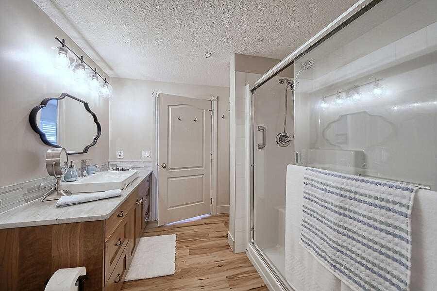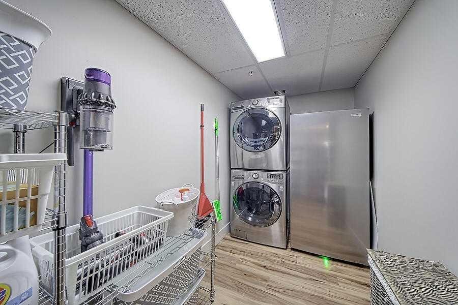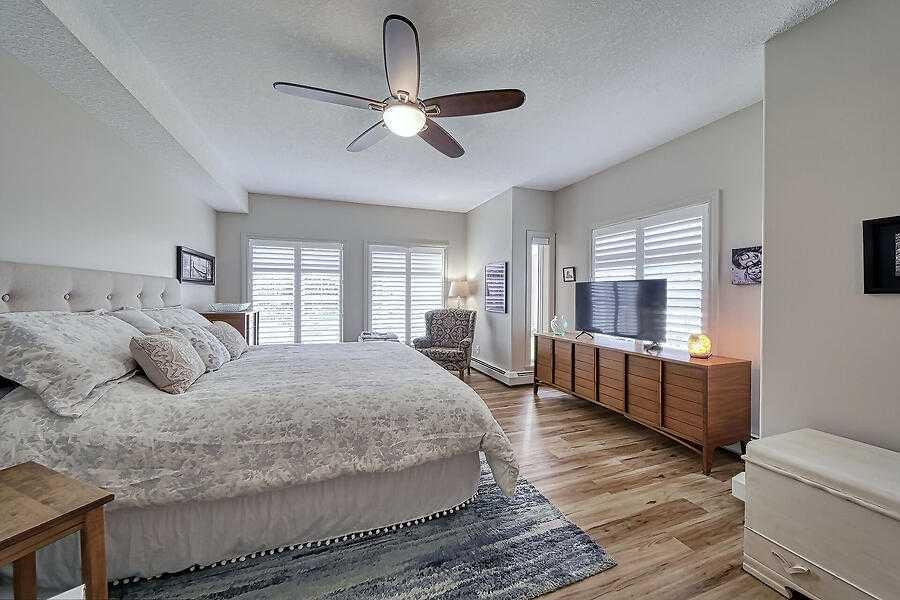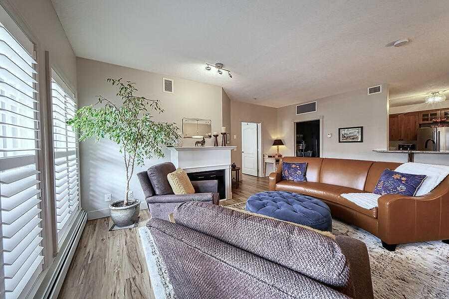 The primary bedroom offers plenty of space to unwind and includes a walk-in closet with a stunning custom organizer, complete with a floating walnut dresser topped with a solid plank. A spacious laundry room with a stackable washer and dryer adds convenience, while the north-facing patio provides a private retreat tucked behind a mature chokecherry tree. With central air included, this home is move-in ready and waiting for you to simply step inside and start living. As a resident of 151 Country Village Road NE you will enjoy an amenity-rich lifestyle. The complex offers a fully equipped fitness centre, indoor pool and hot tub, a recreation/party room, workshop and crafts room, bowling alley and theatre/movie room. There are guest suites available for hosting visitors, and underground titled heated parking stalls, many with extra storage. Elevators service the building and there is a car wash bay on site. Condo fees include a large number of utilities and access to these shared amenities. The building is well located with walking paths, ponds, green spaces, nearby shopping, and local dining options.