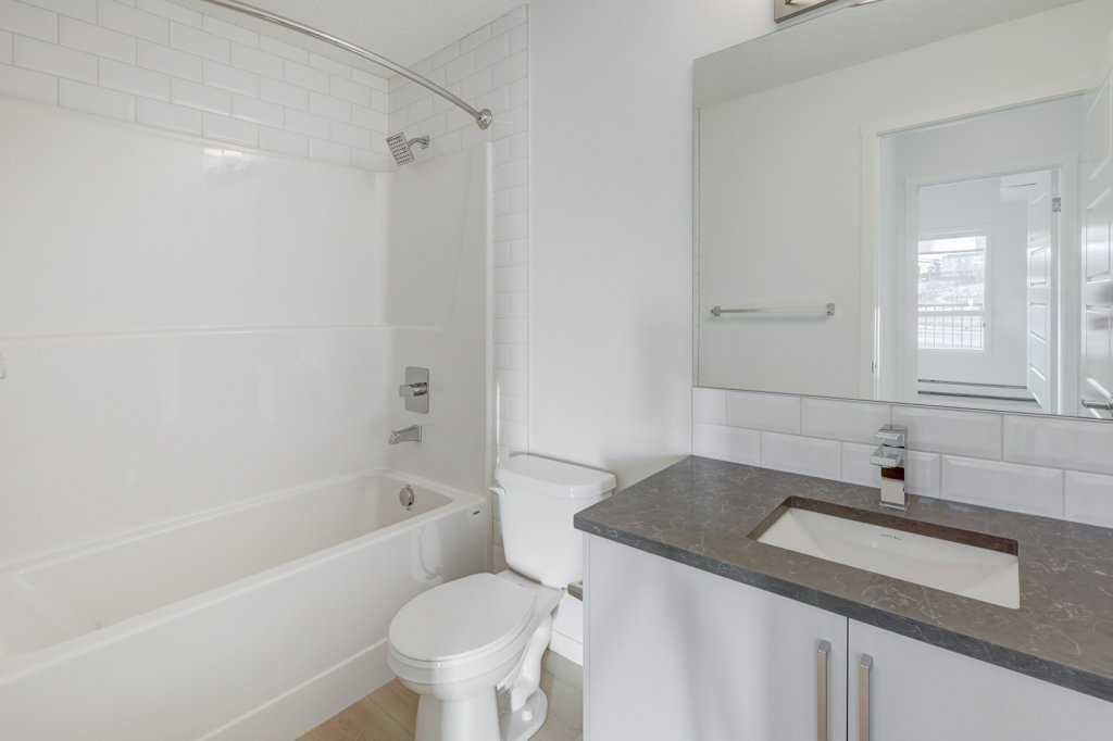 INTRODUCING GLACIER RIDGE, IN BEAUTIFUL NORTHWEST CALGARY. BUILT BY CEDARGLEN LIVING, WINNER OF THE Customer Insight BUILDER OF CHOICE AWARD, 6 YEARS RUNNING! BRAND NEW "GR07R" unit with high-spec features. You will feel right at home in this well thought-out, 915.99 RMS sq.ft. 2 bed, 2 bath home with open plan, 9' ceilings, LVP flooring throughout (NO CARPET), Low E triple glazed windows, BBQ gas line on the patio, Fresh Air System (ERV), A/C rough-in, and so much more. The kitchen is spectacular with full height, two tone cabinets, quartz counters, upgraded bank of drawers for pots and pans, undermount sink, rough-in water line to the fridge and S/S appliances. The island is extensive with built in flush breakfast bar, which transitions into the spacious living area, perfect for entertaining. The spacious primary bedroom has a large bright window (triple pane windows) and huge walk-in closet. You'll be impressed with the 4pc ensuite with double vanities and stand up shower. The second bedroom is located on the other side of the unit for privacy and a 4pc bath with quartz counters, and undermount sink is located next to it. Nearby is the spacious laundry/storage room, this is a must see (washer & dryer included). Highlights include: Hardie board siding, designer lighting package, sound reducing membrane to reduce sound transmission between floors, clear glass railing to balconies and 1 titled underground parking stall included. A once in a lifetime community in Northwest Calgary. Framed by views of the Rocky Mountains and distinguished by natural coulees that cross the land, Glacier Ridge offers a rare chance for families to live in a new community. PET FRIENDLY COMPLEX, IMMEDIATE POSSESSION AVAILABLE AND DON'T FORGET TO CHECK OUT THE VIRTUAL TOUR.