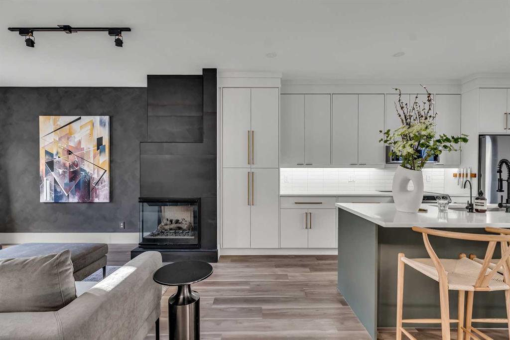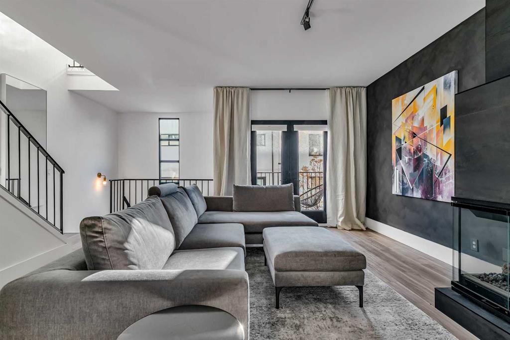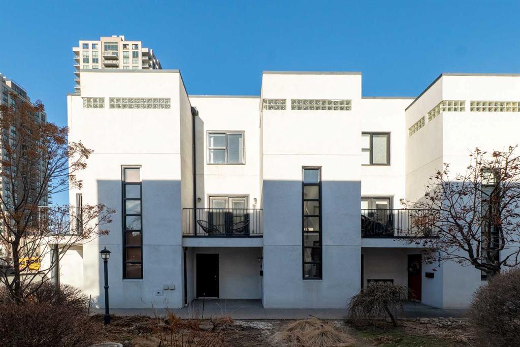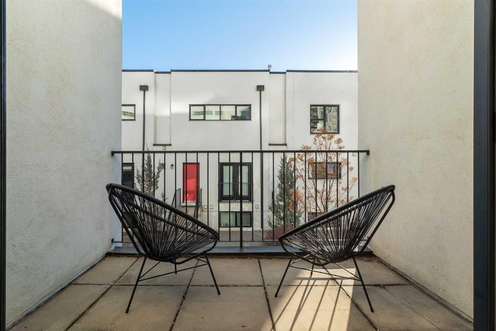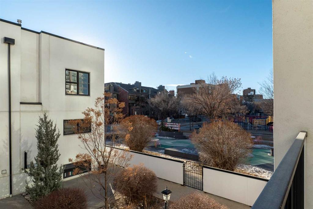 ***OPEN HOUSE: Saturday, January 24th 12:00 - 2:00 PM*** Architecturally distinct and thoughtfully renovated, this STURGESS ARCHITECTURE townhome offers refined urban living in the heart of Betline with SUNNY SOUTH EXPOSURE overlooking a quiet landscaped courtyard. Entry-level access provides a practical foyer with DIRECT GARAGE CONNECTION, creating everyday convenience while maintaining privacy from the street. The main living level is designed around an OPEN-CONCEPT FLOOR PLAN with 9’ CEILINGS and abundant natural light anchored by a dramatic two-storey window wall. The renovated kitchen blends form and function with QUARTZ COUNTERTOPS, A STATEMENT ISLAND WITH CRUSHED GRANITE SINK, FULL-HEIGHT CABINETRY, STAINLESS STEEL APPLIANCES, and A PANTRY WITH PULL-OUT STORAGE, supporting both daily living and entertaining. French doors extend the space outdoors to an OVERSIZED 177 SQ. FT. PRIVATE PATIO, ideal for relaxed evenings and summer gatherings. The main living area is centered around a TWO-SIDED GAS FIREPLACE that provides warmth and architectural interest without disrupting flow, while additional French doors open to a SECOND BALCONY overlooking the courtyard. A tucked-away powder room with stylish wallpaper completes this level. The upper floor is arranged for comfort and flexibility. The primary bedroom easily accommodates a king-sized layout and features a LARGE WALK-IN CLOSET with CHEATER ENSUITE ACCESS to the main bathroom. The 4-piece bathroom includes a STAND-UP SHOWER and A SUNNY SKYLIGHT that fills the space with natural light. The second bedroom enjoys SOUTH-FACING COURTYARD VIEWS, while an OPEN FLEX SPACE with GLASS BLOCK DETAILS creates an ideal office nook or reading area. Laundry is also conveniently located on this level. WIDE-PLANK LAMINATE AND TILE FLOORING flow throughout with NO CARPET, complemented by FLAT-PAINTED CEILINGS for a clean, modern finish. Notable upgrades include CENTRAL AIR CONDITIONING, A HIGH-EFFICIENCY FURNACE, and A NEWER HOT WATER TANK, offering long-term comfort and efficiency. Outdoor living is enhanced by TWO PRIVATE OUTDOOR SPACES. Parking is thoughtfully arranged with TWO COVERED STALLS, comprised of A PRIVATE INSULATED ATTACHED GARAGE AND A COVERED CARPORT (tandem). Located on a quiet street yet surrounded by everyday amenities, this home offers exceptional walkability with CONNAUGHT SCHOOL AND PLAYGROUND ACROSS THE STREET, easy access to parks, bike lanes, and green space, and close proximity to grocery stores, downtown, the tennis club and the shops and dining along 17TH AVENUE, delivering a highly livable and design-forward inner-city lifestyle. An exceptional setting with rare long-term upside. The adjacent street is slated for permanent transformation into a landscaped green space through an innovative public-realm project by SPECTACLE Bureau and The Tula Project, bringing ENHANCED GREENERY, REDUCED TRAFFIC, AND A CALMER STREETSCAPE that elevates both daily living and future appeal.