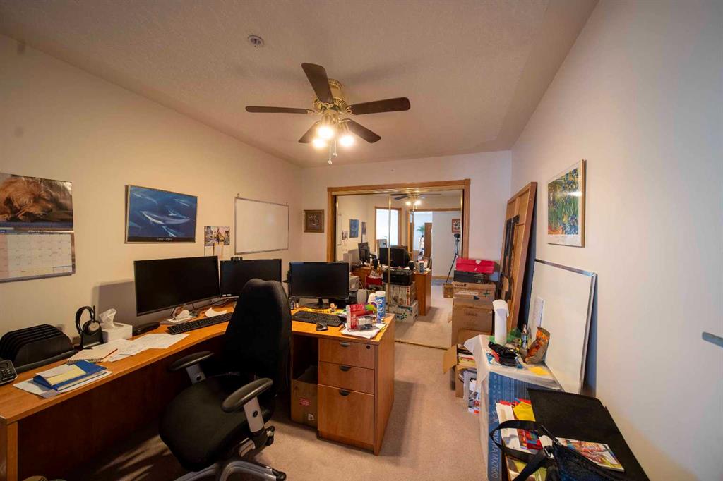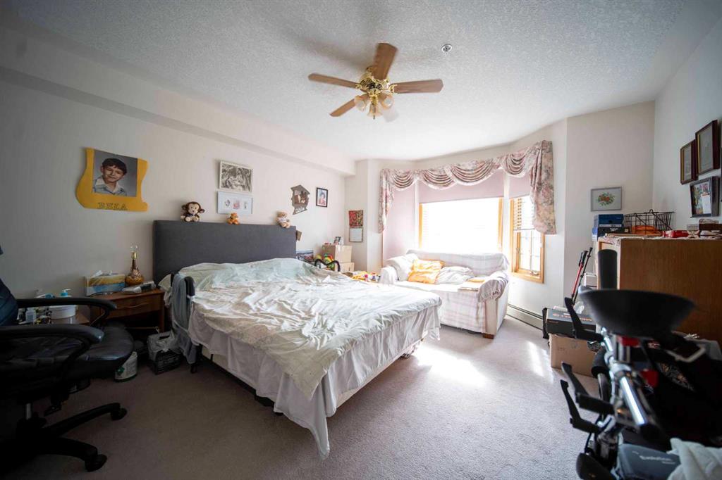 bathroom and a large in-suite laundry room with abundant storage add everyday convenience. Additional thoughtful touches include a spacious entry foyer, tile flooring, a wall-mounted A/C unit, a large kitchen pantry, built-in features, and linen closets in both bathrooms. The west-facing balcony has been recently upgraded and partially enclosed to block the wind, making it the perfect spot to enjoy long summer evenings. Pride of ownership is evident throughout this warm and cozy home.