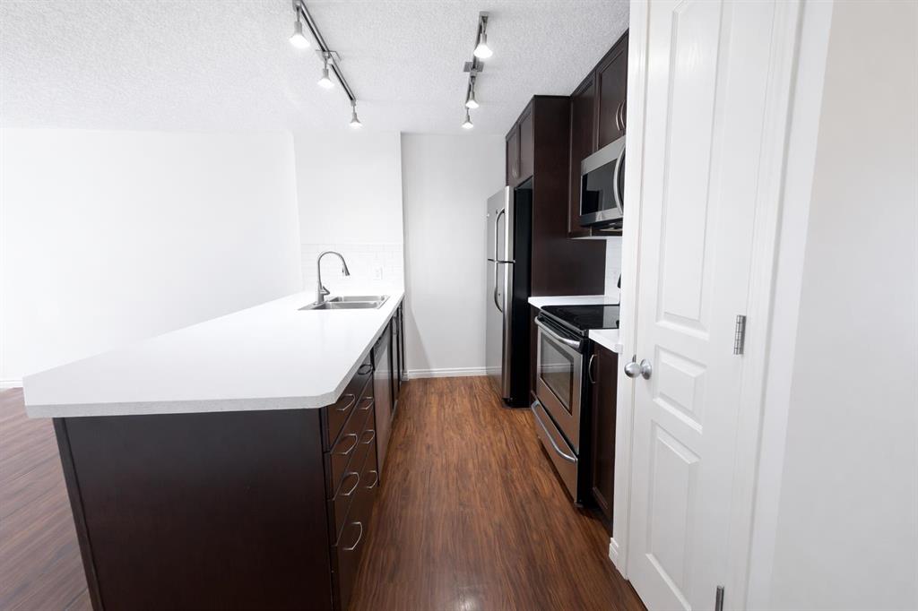 Welcome to this impeccably maintained townhouse in the heart of Auburn Bay, where modern comfort meets an unbeatable four-season lake lifestyle. This bright and airy 763 sq ft home is bathed in warm sunlight throughout the day, creating a vibrant and inviting atmosphere from the moment you step inside. Designed with an effortless open-concept flow, the kitchen serves as the centerpiece of the home, boasting premium countertops, sleek espresso cabinetry, and a central island that transitions perfectly into the spacious living area. Whether you are a first-time buyer looking for a move-in-ready sanctuary or an investor seeking a high-demand property near the South Health Campus, this layout delivers on every front.