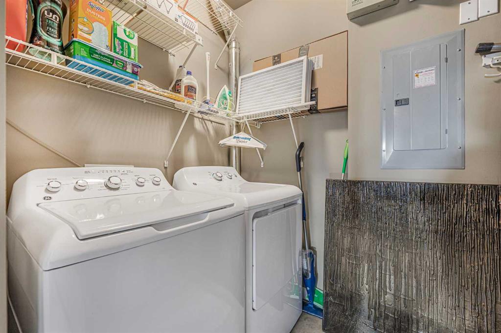 Peace of mind is guaranteed with over $30K in recent upgrades, including a new high-efficiency furnace and hot water tank (Dec 2022) and new low-flow toilets (2023) and a NEW CENTRAL AIR CONDITIONER (Aug 2025). You also get a large attached garage with overhead storage. The complex is impeccably maintained and the location is unbeatable: walk to the shops and restaurants of the West District and West 85th, and enjoy super easy driving access to Bow Trail, Old Banff Coach, and Stoney Trail SW. Don't miss this move-in ready gem!