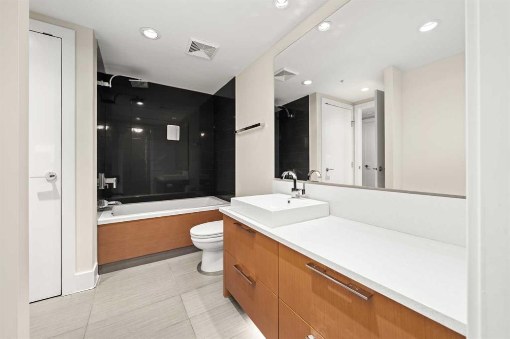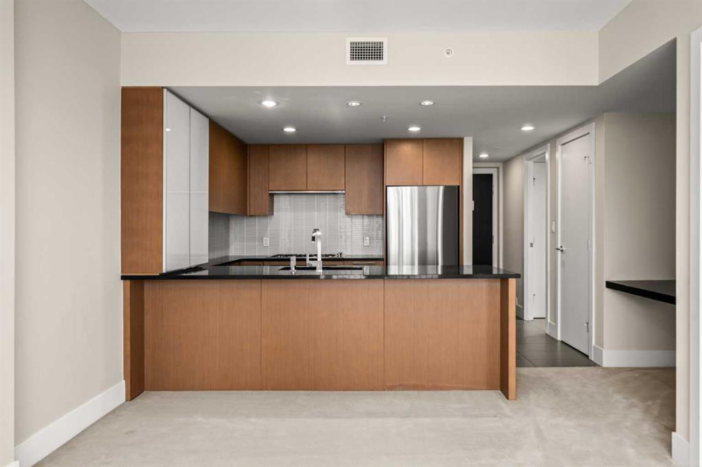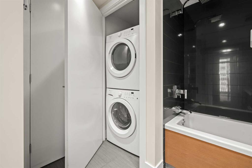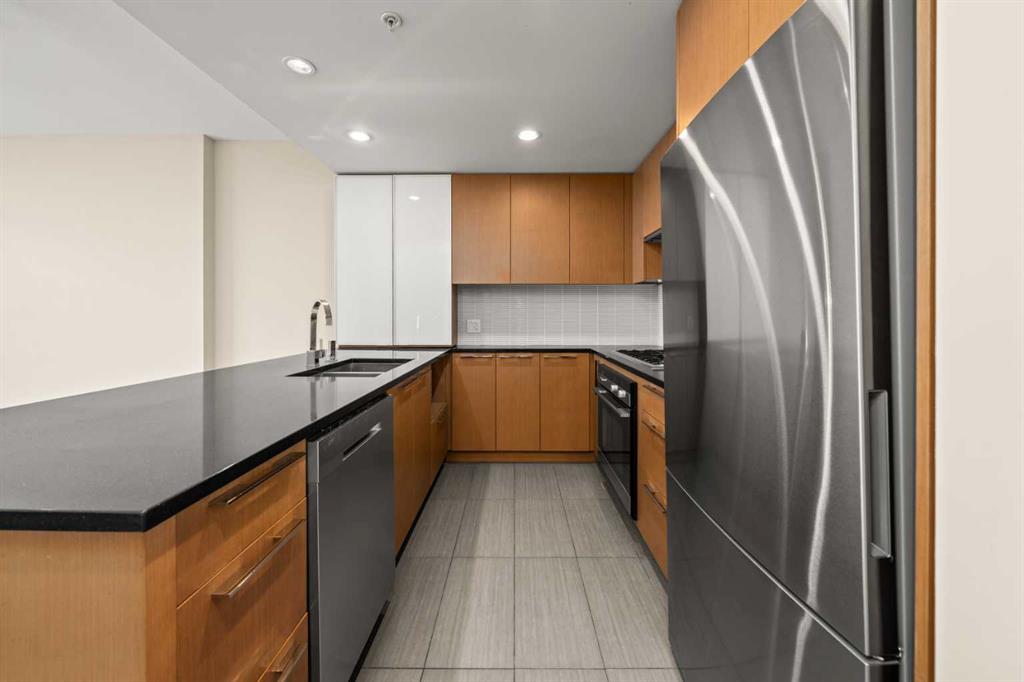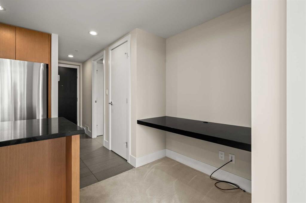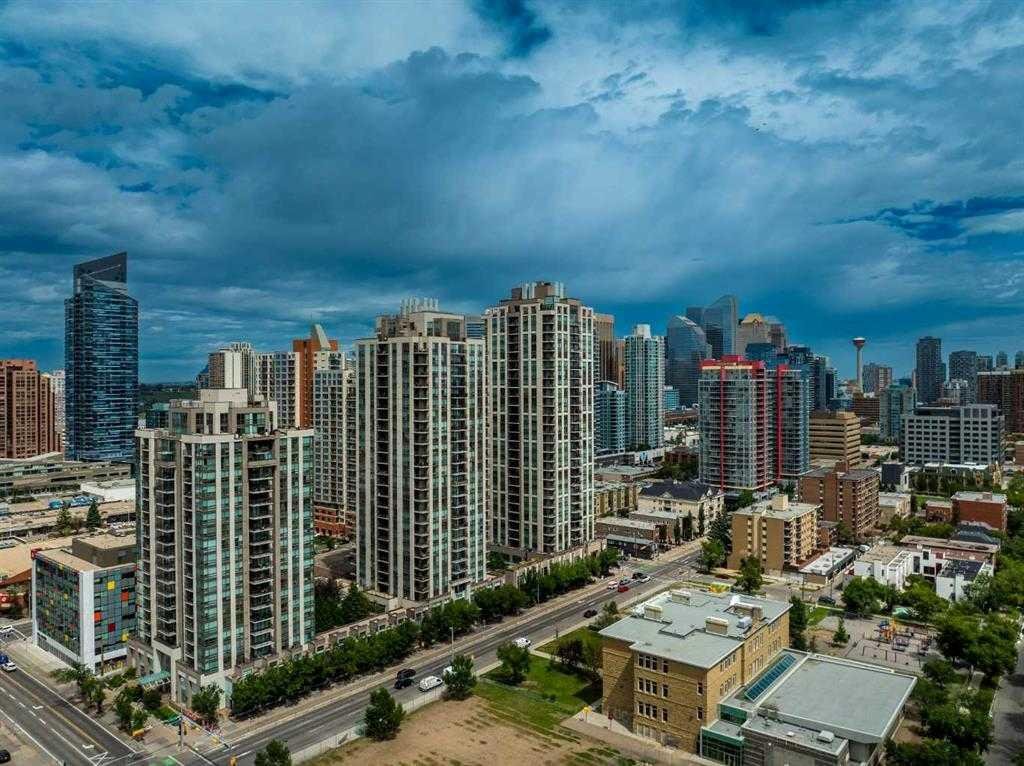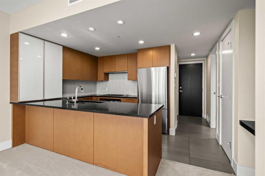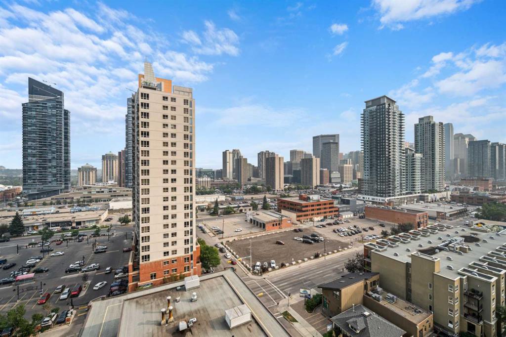 Welcome to BELTLINE living at its best. This 1 BEDROOM PLUS DEN home combines a modern layout with thoughtful upgrades, CITY VIEWS, and access to full building amenities—ideal for first-time buyers, professionals, or investors. A PRIVATE FOYER sets a welcoming tone and enhances privacy. The ENCLOSED DEN offers valuable flexibility as a home office, study, or storage space, while the TECH DESK provides a dedicated spot for working from home or catching up on emails. The open concept design connects a modern KITCHEN with the central dining and living areas. Featuring a PENINSULA WITH EATING BAR, STONE COUNTERTOPS, NEW FRIDGE, STAINLESS STEEL APPLIANCES, GAS COOKTOP AND OVEN, and a GARBURATOR, the kitchen is equally functional and stylish. LARGE PATIO SLIDERS extend the living room onto A GENEROUS BALCONY with SWEEPING DOWNTOWN VIEWS—an inviting space to relax or entertain. The primary bedroom also enjoys direct access to the balcony, filling the room with natural light and cityscape views. A WALKTHROUGH CLOSET leads to a 4-PIECE BATHROOM, creating a convenient cheater ensuite design. Additional features include IN-SUITE LAUNDRY, CENTRAL AIR CONDITIONING, FRESH PAINT, and recently cleaned carpet. Parking is easy with a TITLED STALL ideally located on P1. Residents of this sought-after building enjoy access to EXTENSIVE AMENITIES: two guest suites, an OWNERS’ LOUNGE, FITNESS CENTRE, YOGA STUDIO, STEAM ROOM, ZEN COURTYARD, BIKE STORAGE, guest parking, and a FULL-TIME CONCIERGE (no more lost packages!). Located just steps to the Sunalta LRT Station, the 11th Avenue Co-op, restaurants, coffee shops, and downtown pathways, this home offers unmatched connectivity and urban lifestyle convenience. Whether you are looking for a comfortable place to call home or a reliable investment property, this Beltline condo delivers the perfect balance of function, style, and location.