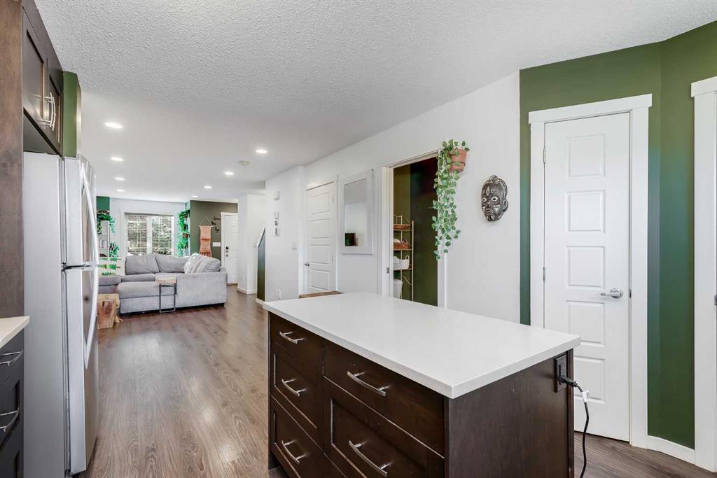 Welcome to this beautifully maintained SMART HOME, a true 3 STOREY DESIGN that stands out among neighbouring bungalow layouts in the heart of family and pet friendly Ravenswood. This condo is fully fenced, with a NO-MAINTENANCE BACKYARD and gas BBQ hookup, creating your own sunny, private retreat at the edge of Airdrie’s Southeast. Easy access to all amenities, shopping and only a short commute to Calgary via the QE2 and RR 292. The LOW CONDO FEES cover exterior home repairs, insurance and all ground maintenance for the Zen compound which will make your new life here low maintenance! The charming community of Ravenswood offers a connected lifestyle with schools (including École des Hautes-Plaines and Heloise Lorimer School), beautiful parks and trails just steps away. Inside, this rare 3-STOREY layout offers a clear separation between living, sleeping and storage spaces, perfect for families, professionals or roommates who value privacy and functionality. You’ll also notice modern tech features like a SECURITY SYSTEM, NEST HOME SYSTEM, LIGHTING CONTROLS AND KEYLESS ENTRY. Upon entering, you’ll notice a bright and functional main floor with 9’ ceilings and durable laminate flooring that flows throughout. The main level is dedicated to everyday living, with a front living room that invites relaxation, a central dining area for gathering, and a stylish kitchen at the back equipped with quartz countertops, stainless steel appliances, full-height cabinetry, a centre island and timeless subway tile — ideal for both casual meals and entertaining. A discreet powder room adds main floor convenience! Upstairs, the second level hosts two generous bedrooms — each with its own private ensuite — offering true dual-primary flexibility. One bedroom features a private 4-piece ensuite and large closet, while the second offers its own 3-piece ensuite and dual closets, perfect for children, guests or roommates. Below, the undeveloped basement provides yet another level of opportunity, featuring high ceilings, a large legal sized window, blown-in insulation, perimeter bracing, and rough-ins for a future bathroom — ready for your creative vision or added storage. Additional perks include HARDIE BOARD SIDING, a HIGH-EFFICIENCY FURNACE, HRV, CENTRAL VAC, WATER SOFTENER and 1 assigned parking stall with abundant visitor and street parking for guests. Additional perks include HARDIE BOARD SIDING, a HIGH-EFFICIENCY FURNACE, HRV, CENTRAL VAC, WATER SOFTENER and 1 assigned parking stall with abundant visitor and street parking for guests.