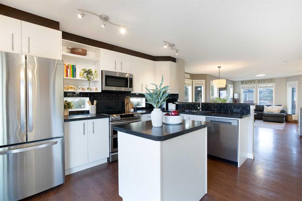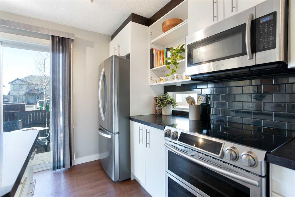 **** OPEN HOUSE SUNDAY NOVEMBER 16TH - 2:00 PM - 4:00 PM **** Prepare to be captivated by this extraordinary End Unit townhome within the Zen complex, in the highly sought-after Kings Heights community! With a highly functional layout offering sophisticated style, this home spans over 1,900 total square feet across three meticulously finished levels, perfectly designed for modern living. Stepping inside, the main floor immediately welcomes you into a bright, open-concept sanctuary. This thoughtfully designed layout is bathed in natural light, anchored by beautiful warm laminate flooring and finished in soothing, designer-selected neutral tones. The living area is instantly inviting, featuring a cozy gas fireplace before flowing effortlessly into the generous dining space—an ideal setting for both entertaining and daily enjoyment. Adjacent to this is the gourmet kitchen, a chef's delight showcasing luxurious granite countertops with an elegant tile backsplash, an island with extra storage, convenient breakfast bar, plus a large pantry. Completing this level is a chic two-piece guest powder room. Ascending to the upper floor, you discover the ultimate in privacy: the highly sought-after dual primary suite configuration. Both oversized bedrooms serve as tranquil retreats, each thoughtfully paired with its own private, full ensuite bathroom. The fully developed lower level offers yet more versatile space, finished with plush carpeting. This basement oasis includes a sizeable recreation room, a third sizable bedroom, and a four-piece bathroom. Outside, enjoy the priceless benefit of a private, fenced, west-facing backyard—a sun-drenched haven that’s perfect for pets and outdoor relaxation. Adding to the convenience, this premium property includes an incredible three dedicated titled parking stalls (two reserved stalls right out front and one nearby stall! Location truly sets this home apart, as you are just minutes from King's Market shopping center, the retail haven Cross Iron Mills, top-rated schools, and enjoy lightning-fast access to Deerfoot Trail. This isn't just a home; it's a lifestyle upgrade. Don't miss the chance to own this premium property—schedule your exclusive viewing today!