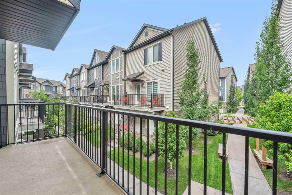 Discover the Award-Winning Community of Legend of Legacy. Welcome to 131 Legacy Point, a stunning townhome crafted by Aldebaran Homes. Bright, airy, and designed for a low-maintenance lifestyle, this home is an excellent choice for first-time buyers and investors alike. Enjoy the convenience of a double attached garage with ample storage. The entry level boasts a spacious office, perfect for remote work, along with a generous foyer and a functional built-in bench with storage. Upstairs, the open-concept living space impresses with 9' ceilings and stylish laminate flooring throughout. The expansive kitchen features quartz countertops, stainless steel appliances, and a large island—ideal for cooking and entertaining. This level also includes two balconies on either end of the home, bringing in natural light and fresh air. The upper level offers a sizeable primary suite with a walk-in closet and private ensuite, plus two additional bedrooms and a four-piece bath. This dog-friendly home is just steps from Legacy's environmental reserve and scenic pathways. It is located in the estate area and offers easy access to schools, shopping, and amenities. Don't miss out—schedule your showing today.