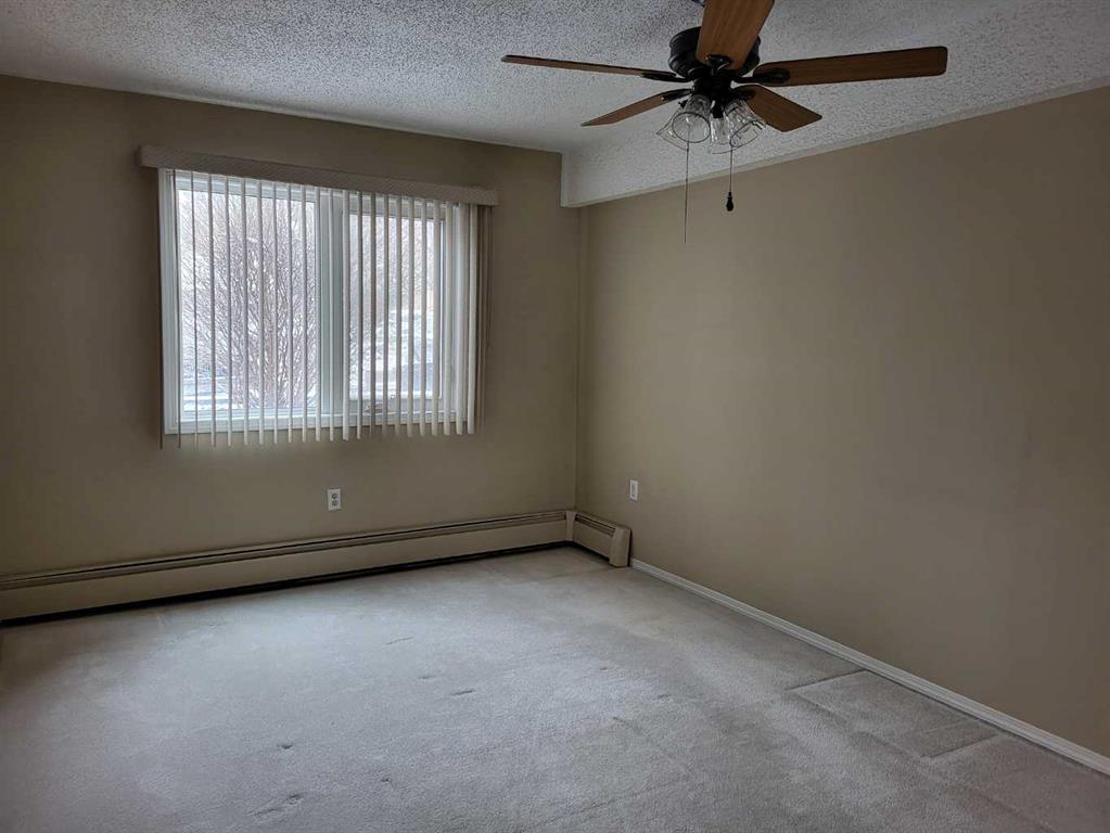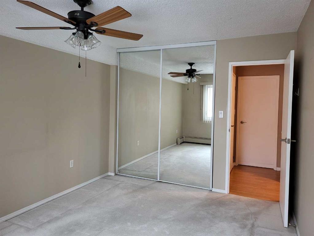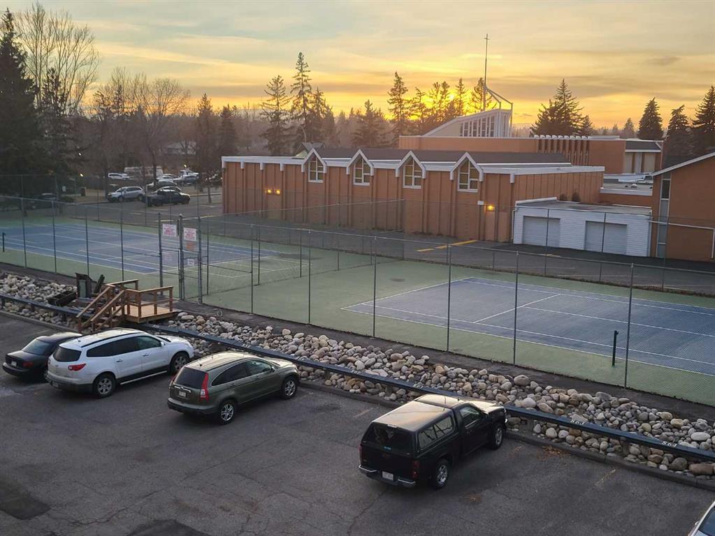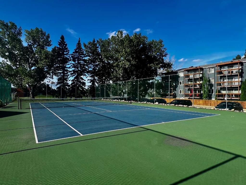 Nestled in one of the city's most established neighborhoods, this 2 bedroom unit is a bright sanctuary. Large windows frame, stunning views of mature trees, bringing the calming energy of the outdoors right into the living room. The kitchen with upgraded cabinetry flows into an airy living space bathed in natural light. The spacious primary suite is completed by a versatile second bedroom ideal for a high-energy home gym or a peaceful guest retreat. Step through sliding glass door onto your private south facing patio, a sun-drenched retreat framed by lush flower beds and fragrant lilac trees. Beyond your door, enjoy resort-style living with access to a recreation center featuring a seasonal outdoor swimming pool, along with tennis and pickleball courts. With the Glenmore Reservoir and its extensive pathway system just minutes away you have nature and recreation right at your doorstep.