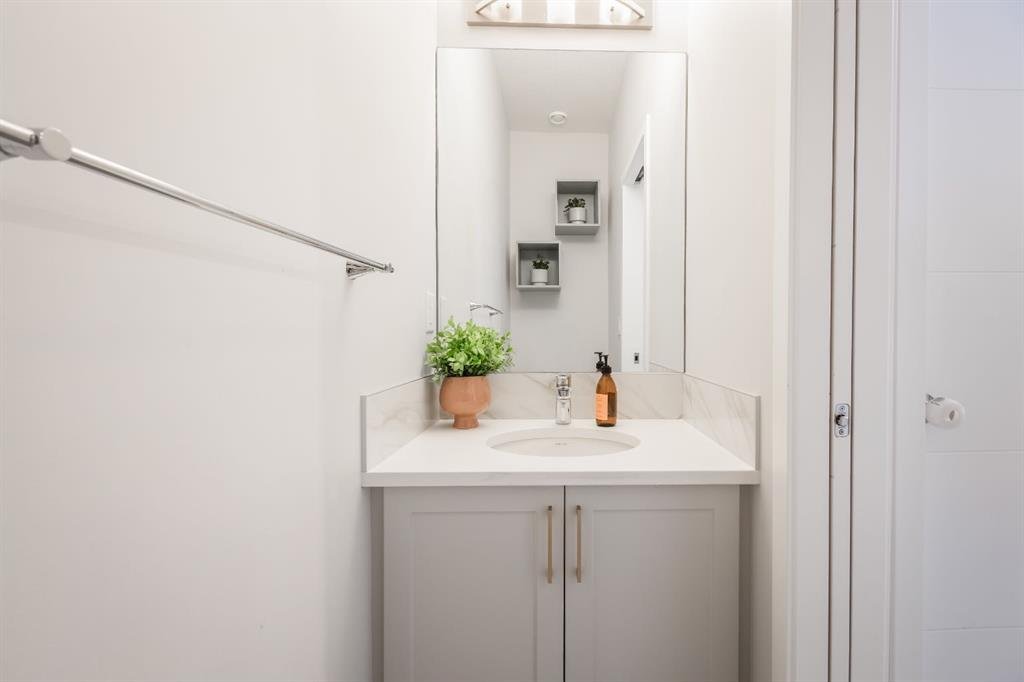 Upstairs, the main floor impresses with its open-concept design, large windows, and stylish finishes. The spacious kitchen includes generous counter space and a functional layout ideal for cooking and entertaining. A dedicated dining area, airy living room, a 2-pc bath, and a separate laundry room enhance everyday convenience.