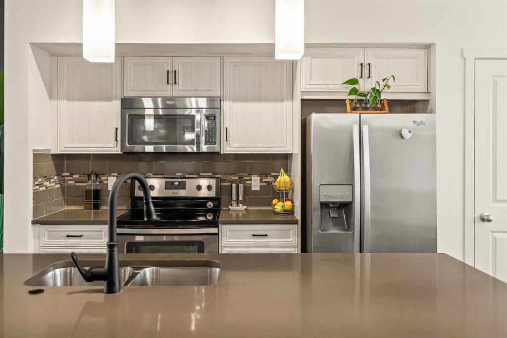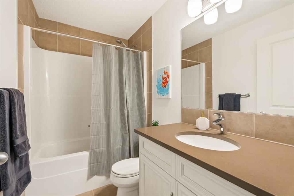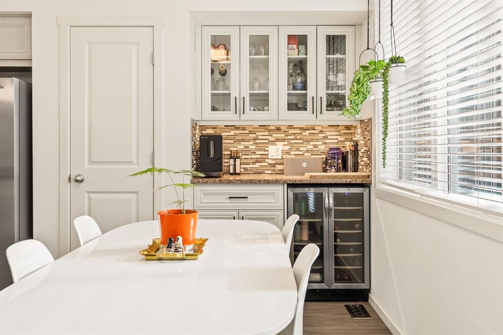 Discover a fantastic opportunity to own in one of Calgary’s premier four-season lake communities—Mahogany. This gorgeous NO-CONDO-FEE townhome is perfectly situated within walking distance to Westman Village, the lake entrance, playgrounds, shops, dining, and countless amenities. From the moment you step inside, this home is sure to impress. The desirable open-concept floor plan features 9’ ceilings, newer luxury vinyl plank flooring and oversized windows that flood the space with natural light. The inviting front living room—complete with a sleek feature wall—flows effortlessly into the stylish kitchen, where you'll find quartz countertops, a subway tile backsplash with mosaic detailing, full-height cabinetry, a generous central island with an upgraded touch faucet, as well as an upgraded built-in bar perfect for entertaining. A convenient half bath completes the well-designed main level. Upstairs, the dual-primary layout offers two spacious bedrooms, each with its own walk-in closet, including custom California Closets in the primary suite, along with private en-suite bathrooms for ultimate comfort. The builder-finished basement adds even more living space with a large recreation room, a third bedroom and another full 4-piece bathroom—ideal for guests, teens, or a home office. You’ll also appreciate the added convenience of rough-ins for a central vacuum system and rough-ins for a reverse-osmosis water system, offering great future upgrade potential. Outside, enjoy the south-facing, fully landscaped yard complete with a deck and plenty of room to savour those warm summer days. A double detached garage adds the final touch to this exceptional property. Beautifully maintained and thoughtfully upgraded, this home delivers unmatched value in an unbeatable location—welcome to life in Mahogany!