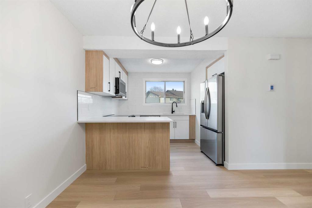 NO CONDO FEES !!! Fully Renovated-Corner Unit | 3 Beds | 1.5 Baths | Larger lot | Newer Furnace | - Welcome to this stunning 1,137 sq. ft. corner unit in the highly sought-after community of woodlands, this home has been fully renovated with modern finishes and thoughtful upgrades. Step inside to an inviting wood fireplace in the living room, perfect for cozy evenings. The brand-new kitchen features sleek cabinetry, quartz countertops, stylish backsplash, and new stainless steel appliances. Gorgeous vinyl plank flooring runs throughout the home, complemented by a beautiful new railing, fresh paint, and upgraded doors. The home also boasts custom closets for smart storage and fully renovated bathrooms with contemporary fixtures. the private back yard provides a peaceful place to relax or entertain. Two dedicated parking spots offer convenience, nearby amenities. Enjoy a prime location close to schools, shopping, transit, parks. Move-in ready and designed for comfort, this gem combines style, space, and location in one perfect package