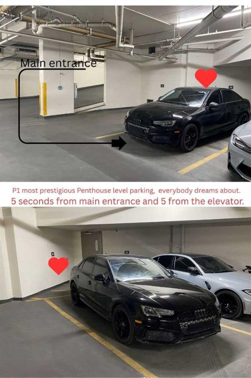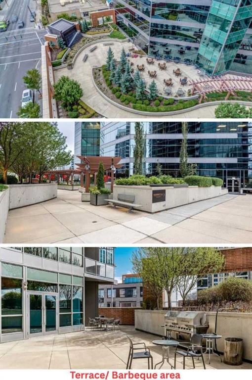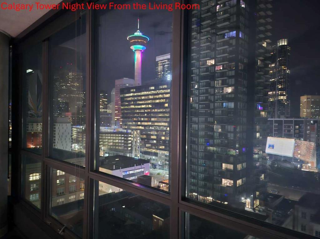 This executive upgraded unit has the best PARKING on P1 level which will save 20-30 minutes every day to get to/from parkade while saving your car longevity not going over the parkade speed bumps and same level titled oversized storage. Unit offers exceptional privacy and tranquility compared to other buildings in downtown thanks to its ALL-CONCRETE construction, including shared walls. Its unique ALL-GLASS EXTERIOR sets it apart, making it a standout building in Calgary's skyline. The OPEN-CONCEPT LAYOUT is designed for comfort and style, this unit boasts 9' ceiling with WRAP AROUND FULL FLOOR TO CEILING WINDOWS with BLINDS at your fingertip to close/open at your convenience and enjoy spectacular views of Calgary Tower. It is well planned one bedroom walk-in/walk through closet, entrance/exit from both bedroom and bathroom, not like any other layouts and one full bath, ceiling-height kitchen with European cabinetry, GRANITE counter-tops, center island, engineered hardwood floors and “Samsung” stainless appliances. Enjoy the ease of in-suite laundry and the comfort of central AIR CONDITIONING, ensuring a perfect indoor climate year-round.