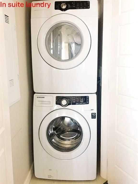 This unit like no others has UPGRADES: P1/Level1 Parking right at the entrance of the parkade, oversized titled storage, “VOVO” smart toilet, smart touchless faucets in the kitchen and bathroom, rain shower, large, matte black sink in the bathroom, new modern lighting fixtures in the kitchen, living room and bathroom, “InSinkErator” Garbage Disposal, countertop soap dispenser, has professionally drilled hole in the countertop to install water filtration like Reverse Osmosis and a new “Samsung” Glass Touch LED microwave.