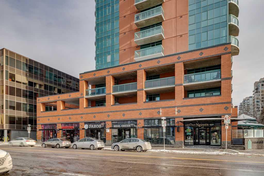 Live with ease just moments from Downtown Calgary in this exceptional two-bedroom residence at Emerald Stone, ideally positioned off vibrant 17th Avenue SW. Surrounded by some of the city’s best shops, cafés, fitness studios, grocery stores, and everyday conveniences, this location delivers true urban walkability with a refined residential feel. Unit 1402 offers a thoughtfully designed floor plan that balances openness with comfort. The spacious open-concept kitchen anchors the home, making it ideal for both everyday living and entertaining. The adjacent living area flows seamlessly onto an expansive balcony, where sweeping views of South Calgary, the mountains, and the energy of 17th Avenue create a stunning backdrop. Both bedrooms are impressively proportioned, offering flexibility for a guest room, home office, or serene primary retreat. The home is further enhanced by in-suite laundry with a front-loading washer and dryer, adding everyday convenience. Emerald Stone is a secure, well-managed concrete building featuring underground parking and an outstanding collection of resident amenities, including a fully equipped fitness centre, billiards, and foosball tables. A titled underground parking stall, complete with a private storage unit and bike parking, completes the offering. Well maintained and exceptionally located, this move-in-ready home presents an outstanding opportunity to enjoy downtown living with comfort, views, and lifestyle at the forefront. Don’t miss Unit 1402 at Emerald Stone.
