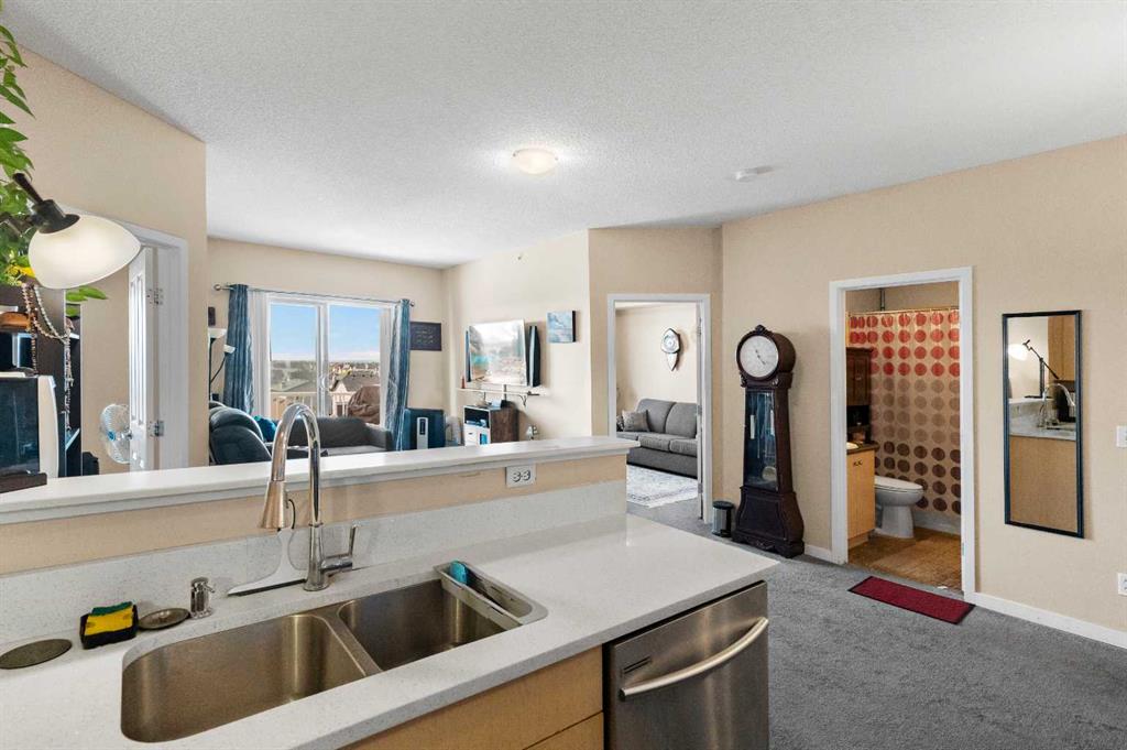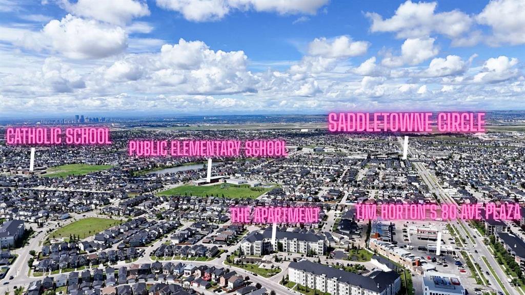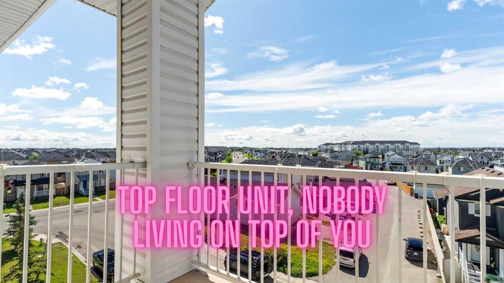 **WATCH VIDEO** TOP FLOOR UNIT! ALL UTILITIES & TWO PARKING STALLS INCLUDED! WELL LOCATED: steps from Tim Horton’s 80 Ave Plaza & Pond, walking distance to Saddletowne Circle (Train Station, bus stop, stores, restaurants, medical & dental, banks, & more), Public Elementary School, Middle School, Catholic School, & Genesis Recreation Centre. This is the one you’ve been waiting for! With 2 generous bedrooms, 2 full bathrooms, and open living room, this home offers space, style, and flexibility for modern living. Soaked in natural light, the open concept design flows beautifully, while the top floor balcony provides the perfect spot to relax and take in the panoramic views. Inside, you’ll find a clean, contemporary space that has renovated kitchen countertops (quartz), and METICULOUSLY MAINTAINED, just move in and enjoy. Also, the unit is flooded with natural light being South-facing. Tucked in a well managed building near a tranquil lake/pond, this home also features in-suite laundry for ultimate convenience. Stylish, spacious, and in an unbeatable location. This is condo living at its finest. Don’t miss your chance to own one of the best units in the complex, CALL TODAY!
