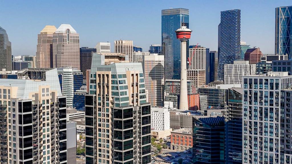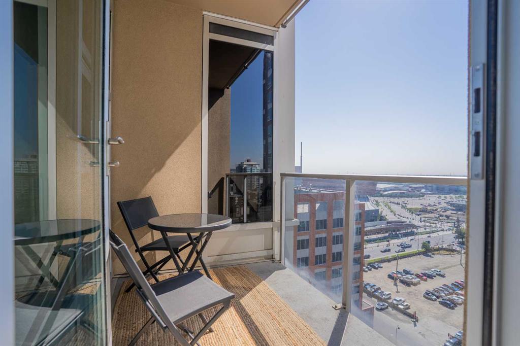 Additional highlights include in-suite laundry, central A/C, titled underground parking, and a separate storage locker. Perched on the 14th floor with sunny south exposure, this home is filled with natural light and offers sweeping views of Stampede Park—which gives you front-row seats to the Stampede fireworks.