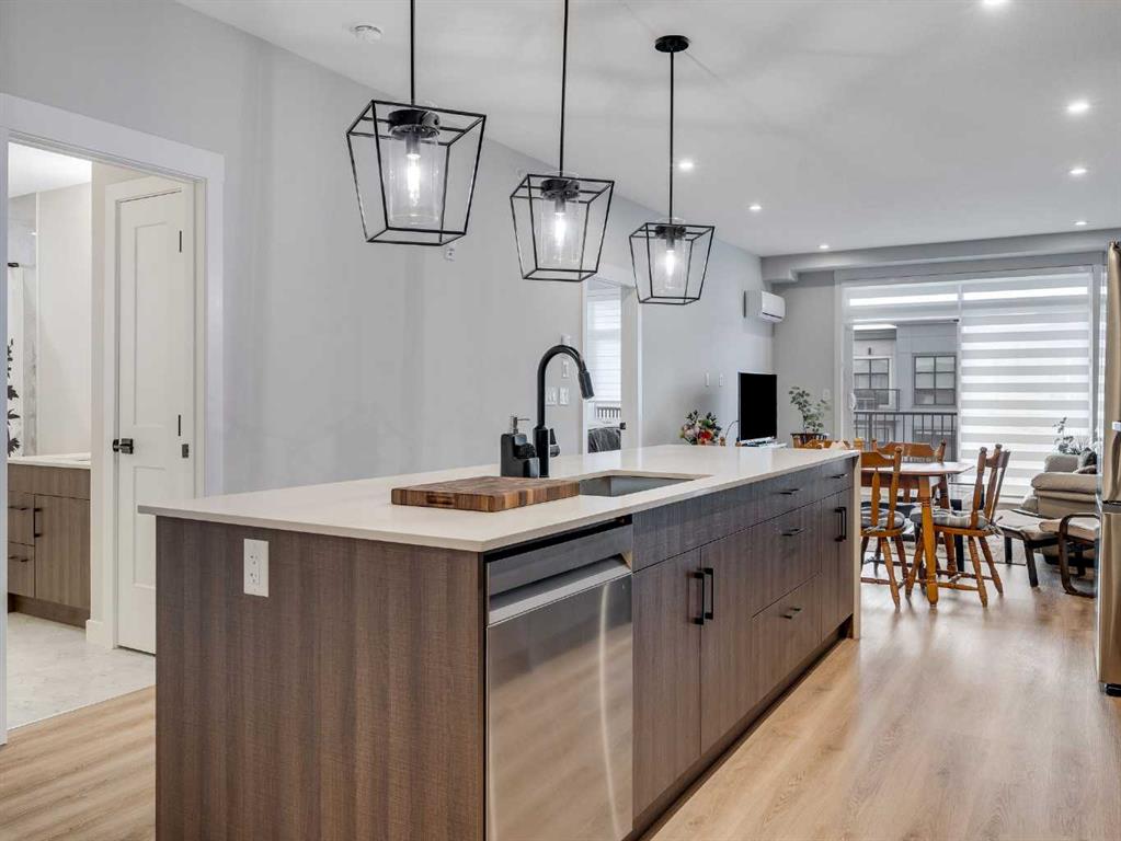 Experience the pinnacle of modern, low-maintenance living in this pristine top-floor 2 bed, 2 bath, corner unit, bathed in natural light from its full southwest exposure and offering breathtaking mountain views from its generous west-facing deck. Perfectly suited for first-time buyers or those seeking to downsize without compromise, this immaculate residence features an open-concept layout anchored by a gourmet kitchen with a stunning waterfall quartz island, seamlessly flowing into the dining and living areas—an ideal space for entertaining. The tranquil primary bedroom is a private retreat complete with a walk-in closet and a luxurious ensuite, while a second bedroom with ensuite access offers versatility for guests or family. Designed for year-round comfort and convenience, this move-in-ready home includes the essential luxury of built-in air conditioning, in-suite laundry, underground parking, underground storage and is situated in the vibrant heart of Seton, just steps from shops, restaurants, the South Health Campus, and with easy access to major commuter routes. This is an exceptional opportunity to own a home that shows better than new in one of Calgary's most sought-after communities; contact your favorite real estate agent today to schedule a private showing.