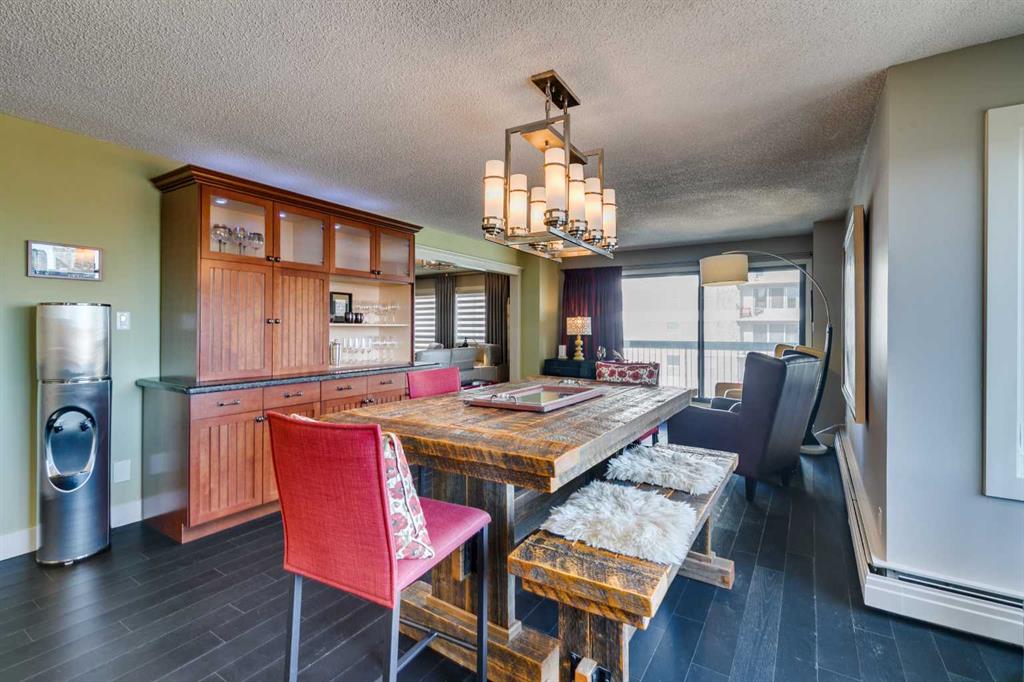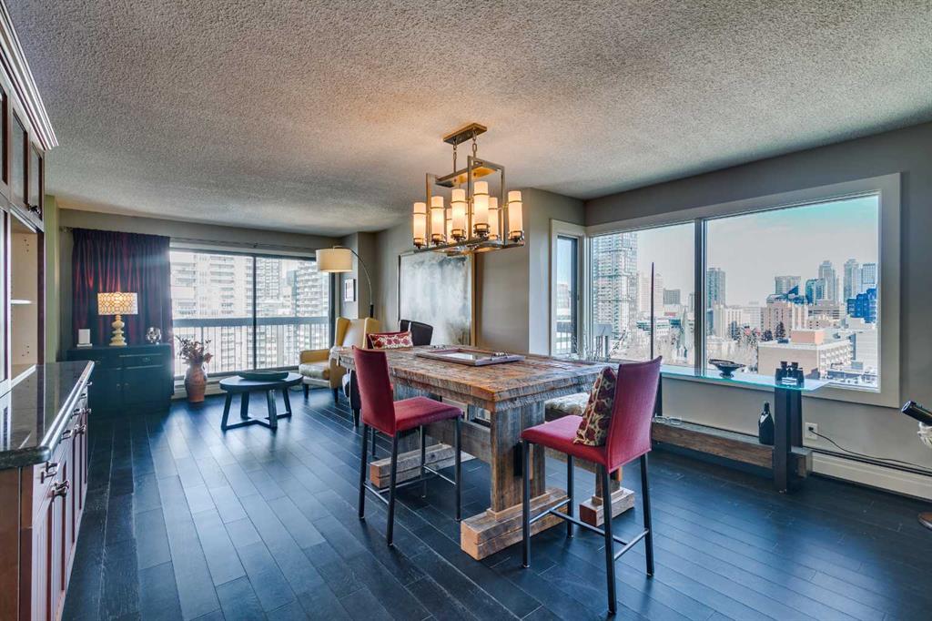 This penthouse features two outdoor balcony retreats, also including a private three-season sunroom & expansive windows that offer breathtaking vistas of sunrise, the Calgary skyline, & views of the Stampede fireworks from almost every room. Meticulously crafted, every facet of this unit exudes thoughtful design, featuring a range of premium upgrades, such as new matte black hardwood floors, fresh paint, central air conditioning, a central vacuum system, designer light installations paired with recessed LED lighting, & luxury window coverings.