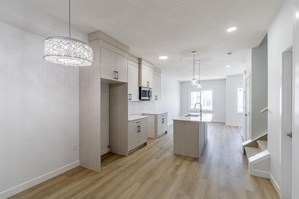Welcome to this beautiful brand-new row house located in the vibrant and fast-growing community of Cornerstone. This modern home features a thoughtfully designed main floor layout that includes a spacious kitchen with a dining nook, a versatile den, and a bright, open-concept great room—perfect for family living and entertaining.
