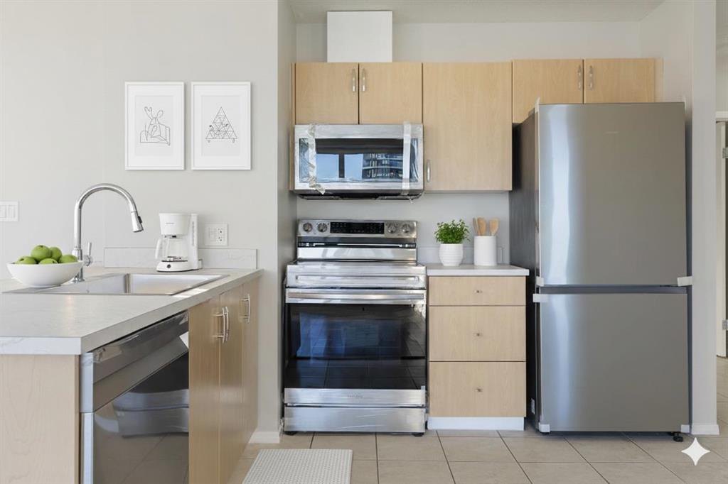 This exceptional end unit on the north side of Vantage Pointe offers truly breathtaking panoramic views of the Downtown Core and the Rocky Mountains, plus stunning east-facing city views you’ll never get tired of. Perched on the 15th floor, this bright and beautifully updated 2-bedroom, 2-bathroom home delivers both comfort and convenience in the heart of the city.