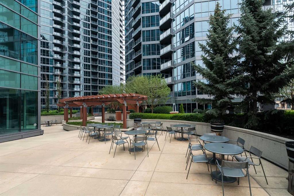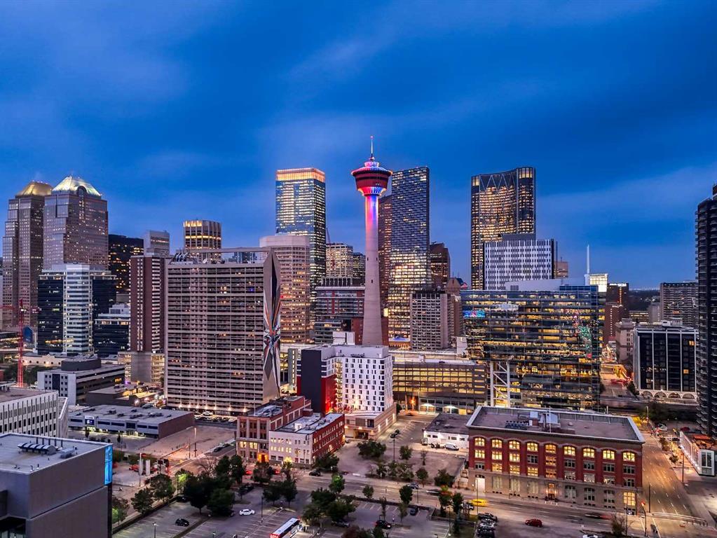 SLEEK 2 BED, 2 BATH, TURNKEY CONDO IN THE HEART OF CALGARY! Imagine living above Sunterra Market with fresh groceries, ready-to-go meals, and your morning coffee just an elevator ride away. This is the Beltline, Calgary’s most vibrant inner-city community where everything happens. Walk to the Saddledome for concerts or Flames games, experience the buzz of Stampede Park, shop and dine along 17th Avenue, or head out to the river pathways for a change of pace. Living the life in the Beltline means your days are connected, your evenings are lively, and your weekends are filled with endless options. At Keynote 1 you are not just buying a condo, you are putting yourself in the center of Calgary’s energy where work, play, and lifestyle all come together. This 15th floor residence offers nearly 900 sqft of chic and functional living with two bedrooms and two full bathrooms. Floor-to-ceiling windows flood the open-concept space and the dining area flows seamlessly onto your spacious balcony finished with interlocking wood tiles that add warmth and style to your private outdoor retreat. Inside, the kitchen is designed to impress with granite countertops, stainless steel appliances, and a custom-style shelving unit that extends your pantry or provides a showcase for glassware, plus a convenient breakfast bar perfect for pre-game cocktails with friends or a post-concert Skip order. Recently updated luxury vinyl plank flooring enhances the modern feel, while in-suite laundry deliver convenience. Unlike most condos, this property comes with not one but two storage lockers, a rare and valuable feature for condo living, along with a titled, secure, heated underground parking stall. BONUS: All the furniture, cookware/glassware, small appliances, cutlery, TV, dining room set can stay. Keynote residents enjoy premium amenities including two fitness facilities, one dedicated to weights and the other to cardio, a stylish owner’s lounge with table games and gathering spaces, and a landscaped courtyard with outdoor BBQs, water feature wall, and room to celebrate with family and friends. Hosting guests is effortless with access to two fully furnished suites available at an affordable nightly rate. Whether you are seeking your own urban retreat or a smart investment in Calgary’s most undeniable location, this home delivers lifestyle, convenience, and exceptional value all in one.