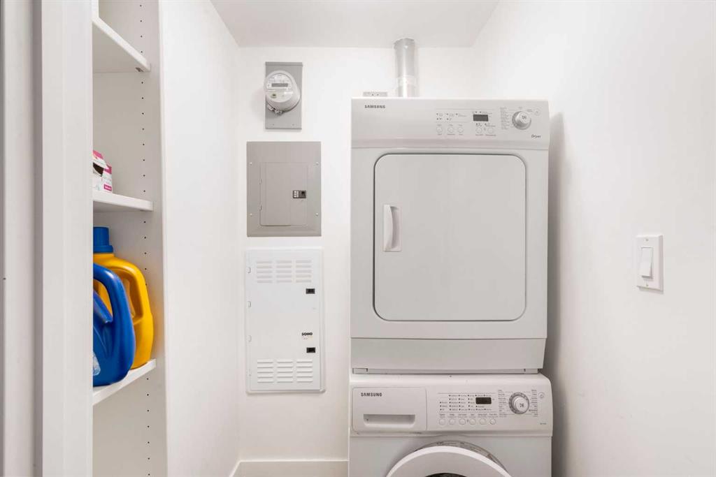 Welcome to this 1 bed 1 bath condo in the London at Heritage Station. This building has security and concierge services. The C train station is steps away for the ultimate commuting convenience. This condo has an open floor plan with high ceilings with ample natural lighting. This thoughtfully designed unit features a spacious primary bedroom, a sleek 4-piece bathroom, and a bright open-concept living area. The den offers the perfect flex space—ideal for a home office, guest room, or cozy reading nook. Whether you're working from home or hosting friends, this layout offers flexibility and style.