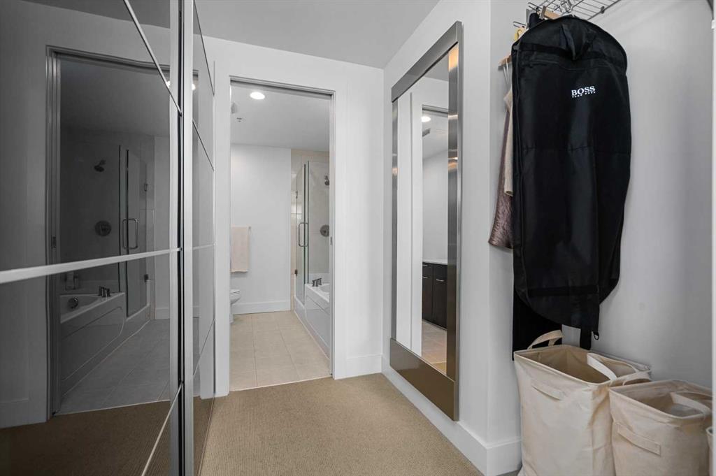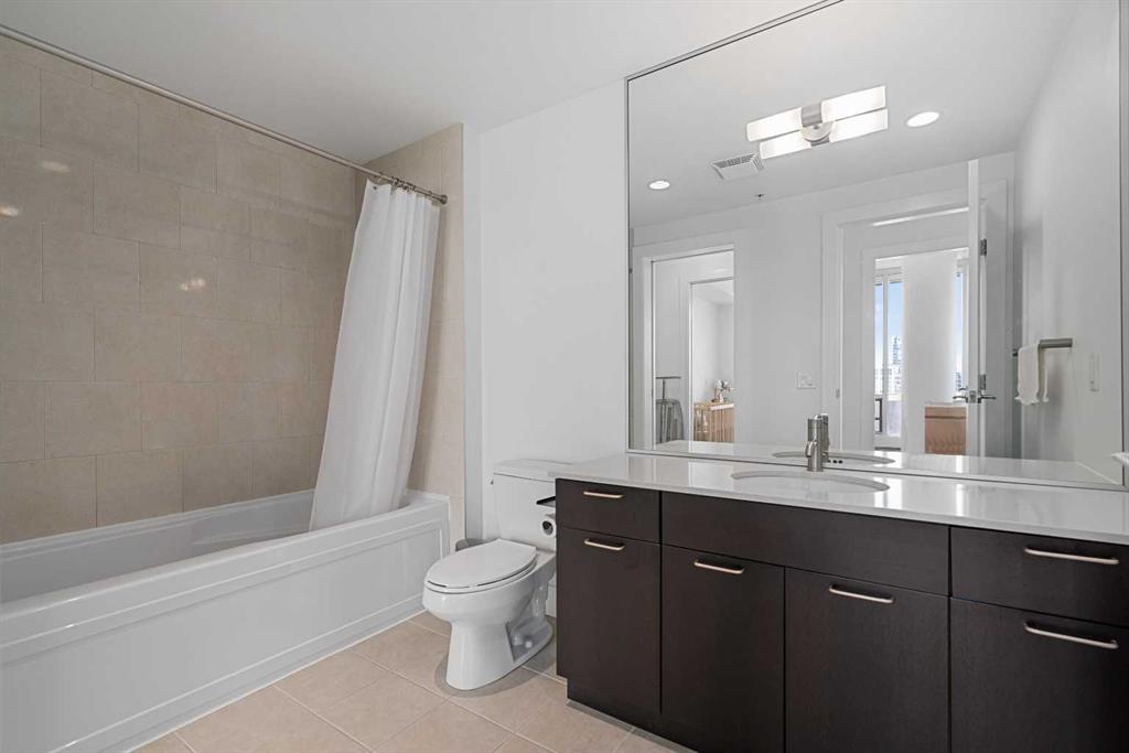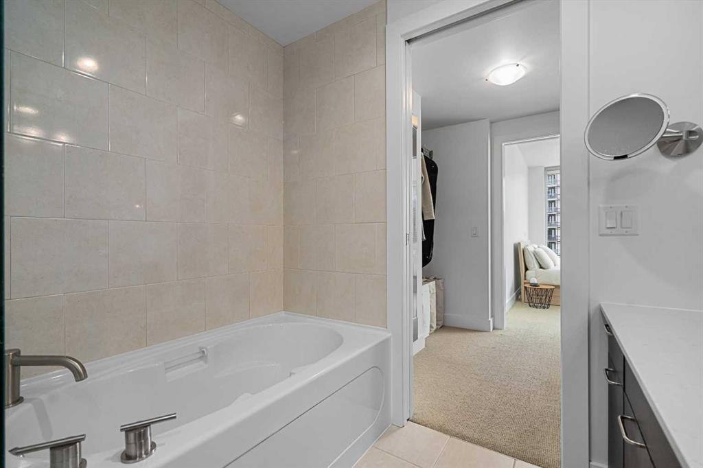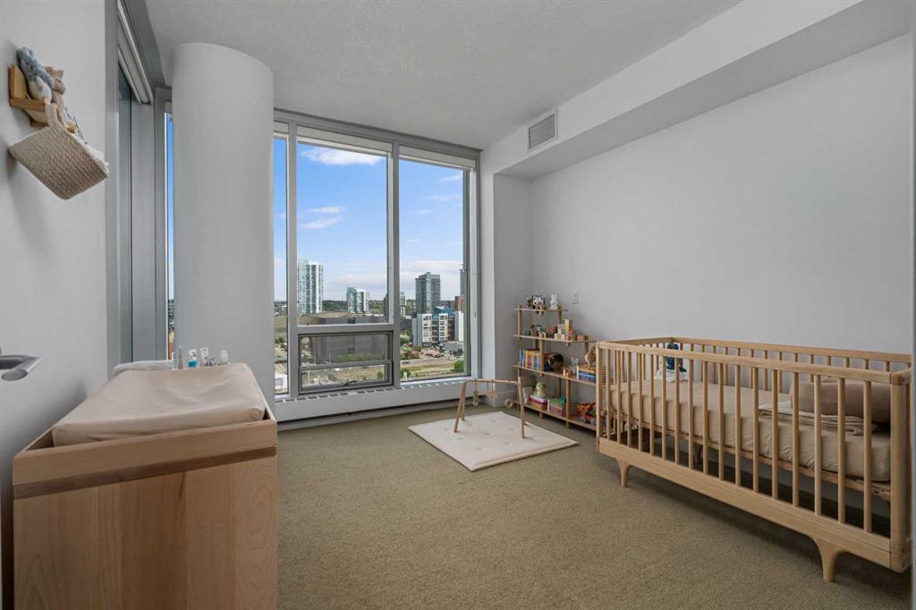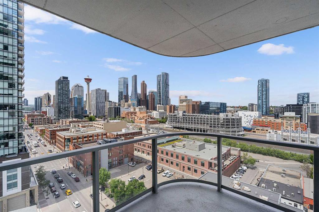 Welcome to Arriva — where refined urban living meets one of Calgary’s most exciting new developments. Located in the heart of the Beltline, this expansive 1193 sq. ft. corner unit offers 2 bedrooms, 2 bathrooms, titled underground parking, and stunning skyline views. Situated directly beside the future Calgary Event Centre, this is a rare opportunity to live next to the city’s most anticipated entertainment district. Step into an open-concept layout with soaring 9’ ceilings, central air conditioning, and approximately 19 feet of floor-to-ceiling windows that frame panoramic views from the Calgary Tower to East Village. Enjoy summer evenings on your private balcony, complete with a gas line for BBQs. The kitchen is a chef’s dream, featuring a premium Miele appliance package, including a 5-burner gas cooktop, stone countertops, a large peninsula island, and a spacious pantry. A generously sized dining area flows seamlessly into the bright and airy living space — perfect for entertaining. The primary bedroom retreat includes its own private balcony, a custom walkthrough closet, and a spa-inspired 4-piece ensuite with separate glass shower and deep soaker tub. The second bedroom also offers a custom walkthrough closet with direct access to a cheater ensuite — ideal for guests or a home office. Additional features include a titled underground parking stall, an assigned storage locker, and access to Arriva’s premium amenities — including full-time concierge/security, an elegant lobby and premium social room with a beautiful outdoor patio. This is downtown living at its finest, with unbeatable access to transit, dining, entertainment, the Stampede Grounds, and the upcoming arena.