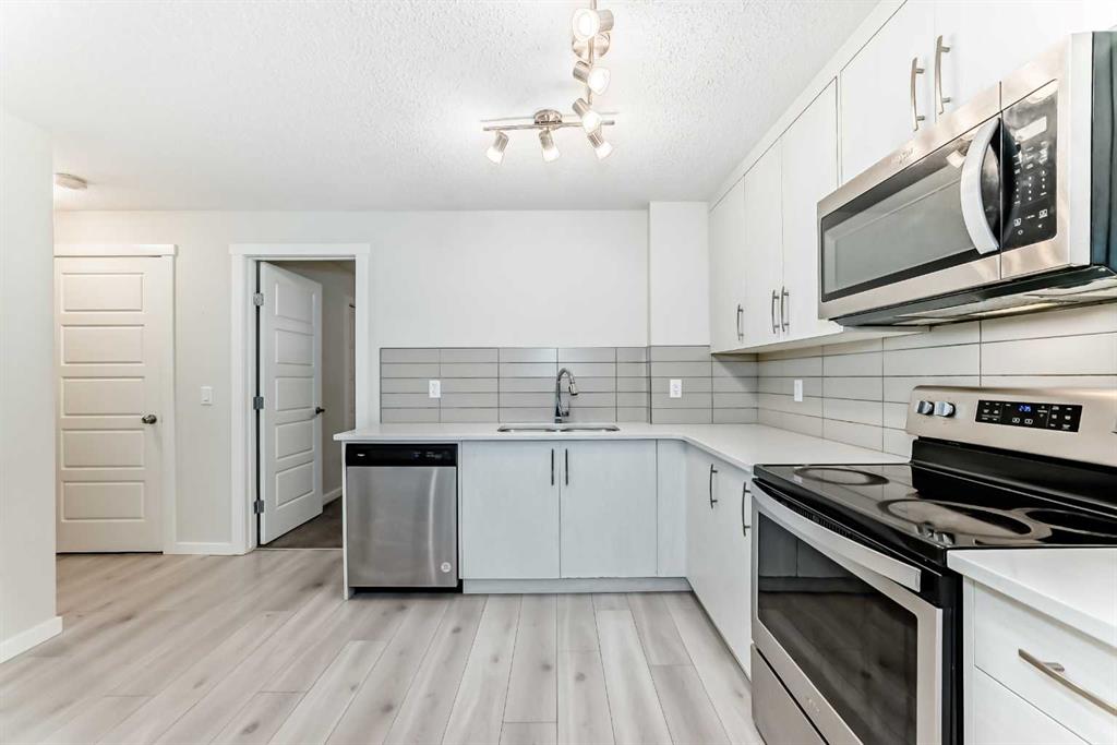 Low Condo Fee Townhome | 2023 BUILT | 3 Large Bedrooms | 2- Full Baths | Grand Living Space | High Ceilings | Open Floor Plan | L-shaped Kitchen | Quartz Countertops | Stainless Steel Appliances | Stacked Laundry | Large Windows | Large Concrete Patio w/ BBQ gas line | Assigned Parking Stall. Welcome to this one level townhome in heart of Cranston’s Riverstone community. It consists of 3 large size Bedrooms / 2x4PC Bath / High ceiling throughout the unit with over 1,057 SQFT of living space. This immaculately presented townhome is the perfect addition to any INVESTMENT PORTFOLIO or for a FIRST or SECOND TIME HOME BUYER. This affordable condo features: spacious kitchen with ton of cabinetry with Quartz countertop and tile backsplash, all STAINLESS-STEEL appliances. It also consists of large bright windows letting in a TON OF LIGHT in the unit, MASTER BEDROOM with ENSUITE & large closet, second and third spacious bedrooms, GREAT SIZE LIVING AND DINING ROOM. For FLOORING: Luxury vinyl plank flooring throughout the living room, dining room and kitchen, and carpets with thick underlay in the bedrooms for your comfort. ADDED BONUS, comes with 1 Assigned PARKING STALL right in front of the Unit. Pets allowed (Condo board restrictions apply), location is exceptionally close to schools, medical, dental, banks, strip mall, cineplex, restaurants, parks and playgrounds and all amenities. Exceptionally close to Deerfoot Hwy, Stoney Hwy, Parks, Golf Course, Bow River walking trails and transit access. Enjoy the perks of the Cranston Clubhouse just a 5 minutes drive from your doorstep. Come see it before it's gone! This condo will not last long, call to book your tour today!