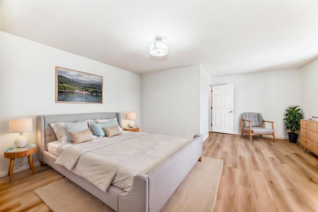 The upper living room has soaring ceilings and oversized windows bringing in loads of natural light. A bedroom or office finishes this level. Your private primary suite is the entire top floor, with a full ensuite, and large walk-in closet. The fully finished walk-out basement is perfect for guests, including their own private entrance, bedroom and full bathroom. Beautiful Vinyl Plank flooring has been upgraded throughout the home. Central Air is incl. to help you enjoy your sunny West exposure. You'll have an easy commute to downtown and/or mountains, with parks, public transit, shopping, pathways all nearby. Don’t miss this opportunity and call for your viewing today!