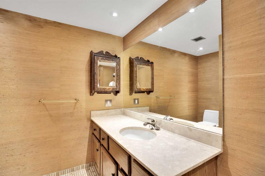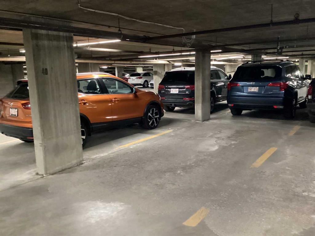ROXBORO HOUSE sub-penthouse suite with STUNNING unobstructed city view and wood burning fireplace. Distinguished building on Elbow River and mature pathways, easy access to full complement of international restaurants and boutiques along delightfully vibrant Fourth Street. For the energetic, you can even walk downtown. Very well kept and maintained 1 bedroom plus den (den is large enough to be a second bedroom), 2 bathroom condo. The kitchen has been updated and is equipped with newer appliances and countertops. The living room boasts an incredibly beautiful stone fireplace and sides onto the dining area. Yes, it's wood-burning, a feature that will be VERY cozy as the winter rolls in. The covered balcony can be accessed from the living room and offers jaw-dropping downtown views. Fireworks from the Calgary Stampede can be enjoyed from this vantage without the crowds! It's like your own personal light show. The large primary bedroom can easily accommodate a king size bed and additional furniture, and offers custom built-in closets with abundant shelving as well as a 4 piece ensuite. The den is currently being used as an office, but is spacious enough to be set up as a second bedroom. The second bathroom just down the hall has a convenient laundry area with full size washer and dryer. A large storage room has built-in shelving, and is in addition to the storage locker that is located in the basement level. Telus fibreoptics are accessed, out of the way, in the upper corner of the storage room. Oak hardwood flooring throughout this incredible condominium...just take a look at the pictures. The building amenities have recently been updated including the indoor pool, gym, and 4th floor sun deck. Roxboro House has a concierge, security, care taker and offers other great amenities such as a workshop, social room and GUEST SUITE on main floor. There is even a special room to lock up your bicycle. Underground assigned indoor parking stall round out the value in this fabulous condo. The lifestyle fees include electricity, heat, water, sewer, garbage/recycling, professional management, insurance, Realtors, please see agent remarks.