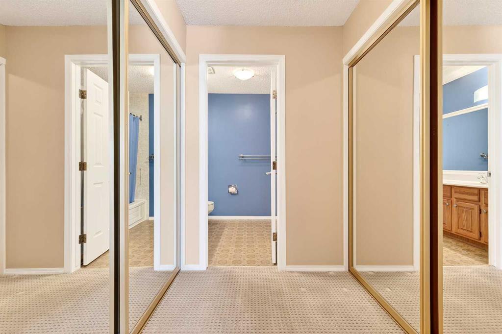 Welcome to this charming and well-maintained 4-level split townhome nestled in the desirable community of Glamorgan. Offering 2 bedrooms, 2.5 bathrooms, and central air conditioning, this thoughtfully designed home blends comfort, functionality, and a peaceful setting. The main level features a bright and inviting living room with large windows that fill the space with natural light, a cozy wood-burning fireplace adds warmth and character to the space, making it the perfect place to relax. You will find the well-appointed kitchen with ample cabinetry, an island and a breakfast bar, along with a dining area that overlooks the living room—an ideal layout for both everyday living and effortless entertaining. A 2 piece bathroom completes the main level. The upper level offers a spacious primary bedroom complete with its own wood-burning fireplace and private 4-piece ensuite, creating a cozy retreat. One additional generously sized bedroom and a 4-piece bathroom complete this level. The unfinished lower level provides access to the single attached garage, laundry and an abundance of storage space, offering flexibility for future development or additional organization. Step outside to enjoy your own private, treed-in backyard, a serene setting perfect for relaxing or enjoying quiet evenings outdoors. Lovingly cared for by the same owner since 1986, this home reflects true pride of ownership. Ideally located just minutes from Signal Hill Shopping District, Westhills, Mount Royal University, parks, and schools, with quick access to Sarcee Trail, Glenmore Trail, and Stoney Trail, commuting and daily errands are effortless. Warm, welcoming, and move-in ready—this is a fantastic opportunity to own in one of Calgary’s most established communities.
