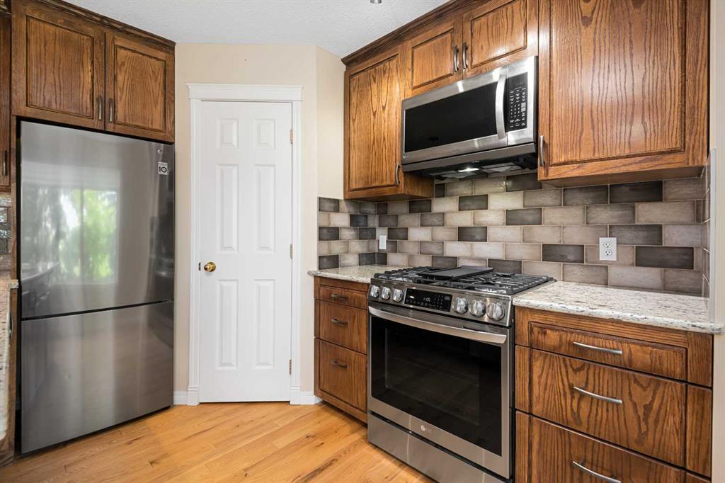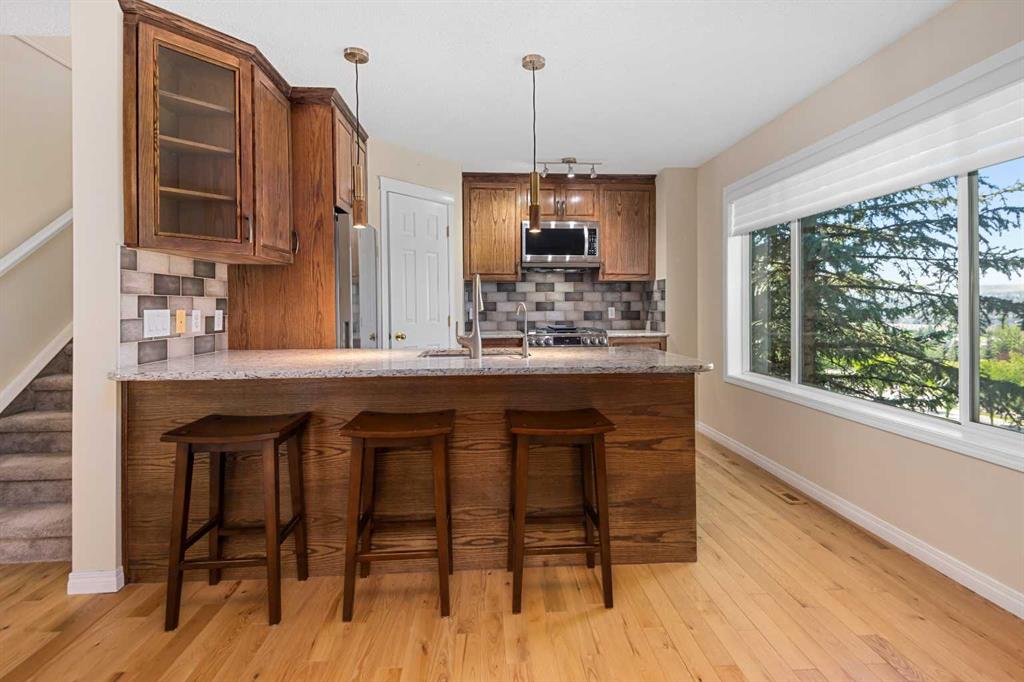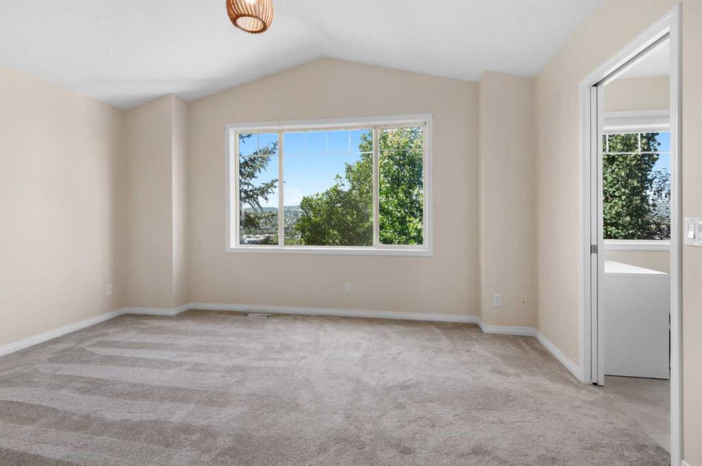 Completely renovated just three years ago, the home features gleaming HARDWOOD floors on the main level, a modernized kitchen with premium GRANITE counters, custom cabinetry, a walk-in pantry, and a water purification system delivering clean, filtered drinking water. All appliances were replaced at the time of renovation, including a GAS range with Air Fryer oven, refrigerator, microwave, dishwasher, and a high-efficiency tower washer/dryer. The open-concept main floor provides a welcoming living room with a cozy gas fireplace, a bright dining area ideal for gatherings, and access to a private balcony with a natural gas BBQ hookup—perfect for enjoying summer evenings outdoors. At the time of renovation, the entire home was freshly painted and new carpeting was installed on both the upper and lower levels. Upstairs, you’ll find two spacious bedrooms, each with its own ensuite bath. The primary suite is filled with natural light, while its ensuite showcases upgrades including a European-style bidet, custom vanity, and a spa-inspired shower. A versatile bonus room offers flexibility as a TV lounge, home office, or optional third bedroom. The WALK-OUT basement expands the living space with a large recreation room, an additional bedroom with a newly renovated full bathroom, and a separate utility room with furnace and humidifier. Comfort is ensured with central forced-air heating plus electric baseboard heating in the lower level. The double attached garage is fully drywalled, painted, and enhanced with a fully boarded, lit attic storage area—an uncommon but highly practical feature. Added conveniences include a central vacuum system and fibre internet wiring (Telus-ready). From autumn through spring, enjoy expansive, unobstructed VIEWS across Hidden Valley; while in summer, mature trees provide shade and privacy. Ideally located near parks, pathways, schools, shopping, and offering quick access to Stoney Trail, Deerfoot Trail, and downtown Calgary, this immaculate, move-in ready home is a rare find and absolutely worth viewing.