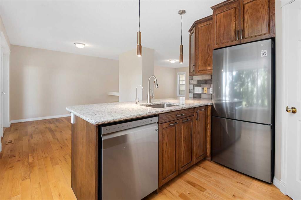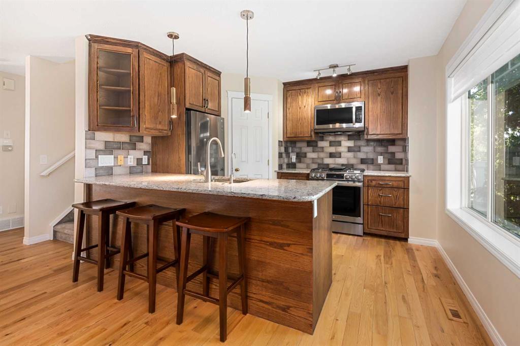 Welcome to this extensively renovated and generously sized townhome in the highly sought-after Hanson Ranch area of Hidden Valley, offering over 2,180 sq.ft. of fully developed living space. Perfectly positioned to back onto open green space with sweeping WEST-FACING views, this exceptional property blends comfort, style, and practicality across three thoughtfully finished levels.