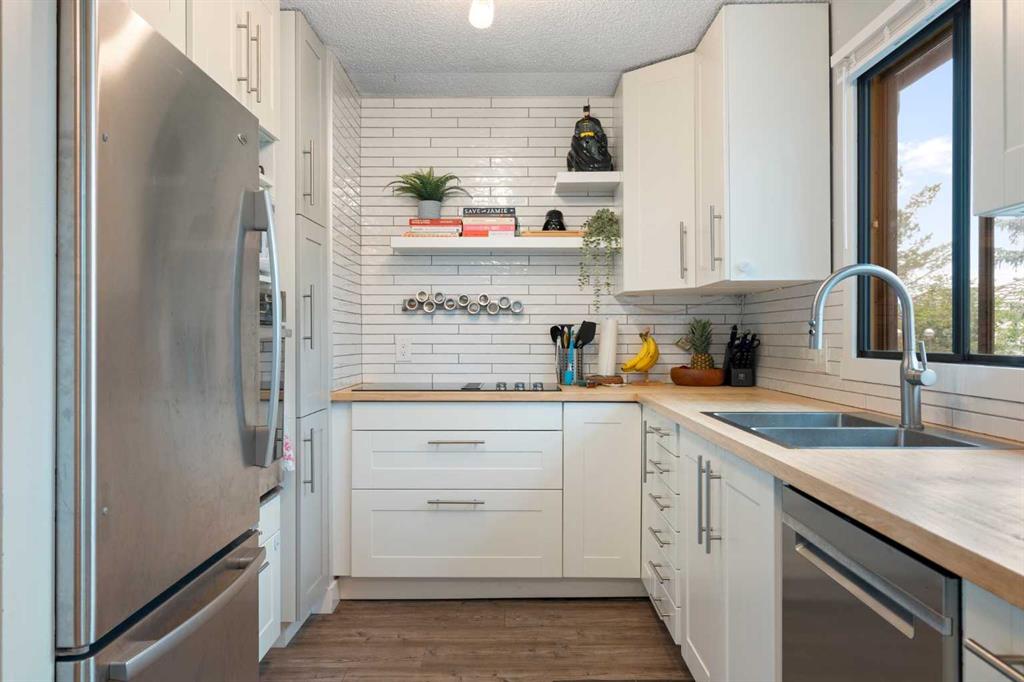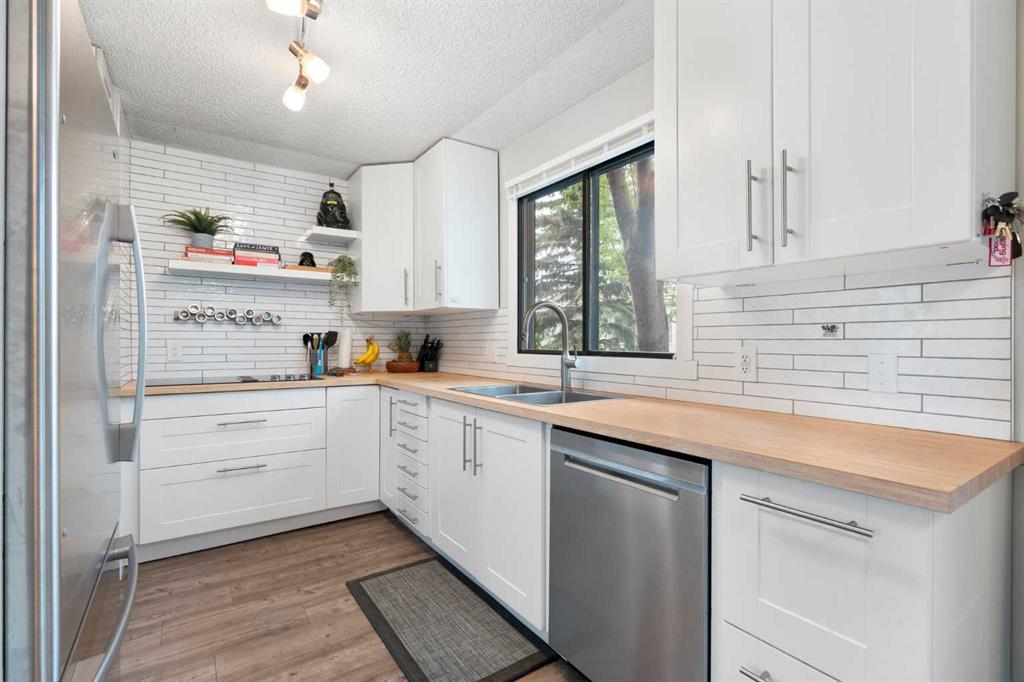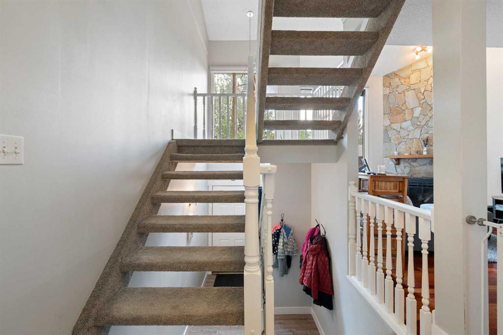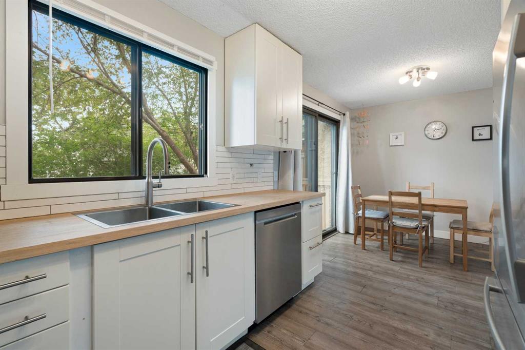 Looking for a spacious town house with an attached garage and basement in the sought after neighborhood of Silver Springs? Look no further. Updates include newer hardwood flooring, carpets, hot water tank, FURNACE June 2025, garage door, bathroom fans and gorgeous kitchen renovation. The main floor features a bright and spacious living room with a floor to ceiling natural stone fireplace. The updated kitchen has white shaker cabinets, stylish subway tile back splash, stainless steel appliance package, main floor laundry and breakfast nook leading to your private back deck. The dining area features a built-in wet bar and over looks the open concept living room with soaring VAULTED ceilings. Don't forget the 2 pc powder room. Upstairs you will find a large primary bedroom with a 2 pc en-suite, 2nd bedroom and 4 pc main bathroom with large tub with newer tile surround. There is a den/office area open to the main floor. The fully developed lower level has a flex space that can be a family room/office/3rd bedroom. The OVER sized single garage has a new garage door and lots of extra storage plus a drive way for extra parking. This is a pet friendly complex that needs board approval. Silver Springs has lots to offer including schools, shopping, easy access to down town and urban parks and pathways. This is a very well taken care of and well run complex. Pet friendly with board approval.