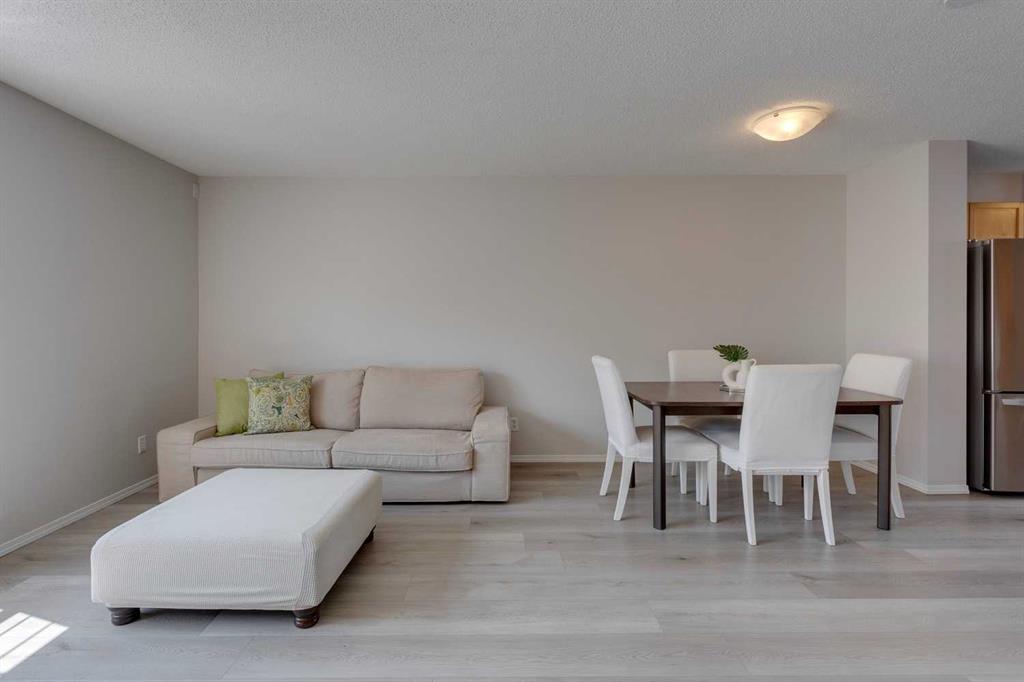 Welcome to this charming townhome nestled in the coveted Mosaics of McKenzie Towne. From the moment you step inside, you’ll love the new vinyl plank flooring, neutral tones, and an abundance of natural light beaming in through the windows. The thoughtfully designed main level has a modern open concept floorplan that seamlessly flows from the living room, to the dining area and on to the kitchen creating an inviting atmosphere that’s perfect for both relaxation and entertaining. The kitchen features newer stainless steel appliances, natural maple shaker cabinetry, new silgranit sink and faucet (ideally overlooking the backyard) and a separate pantry. Upstairs you’ll find 2 large bedrooms, on opposite ends of the hallway, each with their own walk in closets, and conveniently separated by a 4 pc bathroom offering plenty of counter space and large linen closet (or extra storage). The 2nd floor is rounded out by an additional “flex” area, perfect for a home office, reading area or play room. The lower level features a large utility room and laundry area as well as access to your attached garage. This is no ordinary single garage….it may have a single door, but the inside measures larger than some double garages…allowing for lots of extra storage (bikes / sports equipment), a work bench and a vehicle / motorbike or both! What sets this unit apart from most other townhouses is the private fenced backyard ….the perfect place to unwind after a long day! And if that isn’t enough….this home is in an ideal location within walking distance to schools, parks and playgrounds and a wide array of dining and shopping options, while also providing easy access to major roadways making it a breeze to get around. This townhouse offers a great opportunity to live in a thriving community, with everything you need at your fingertips. Be sure to book your showing today!