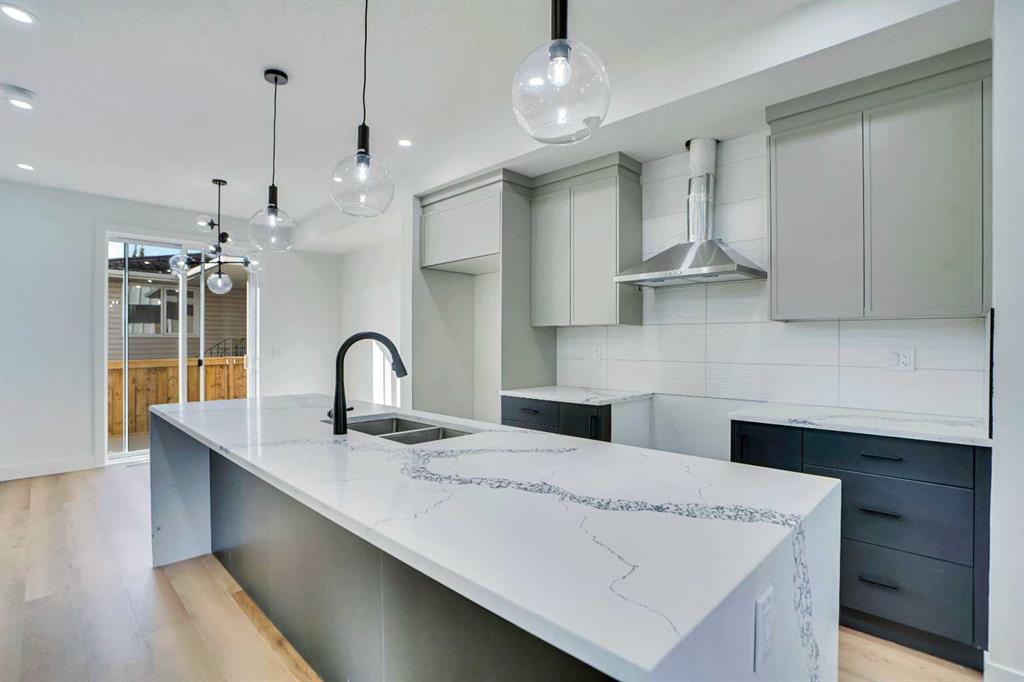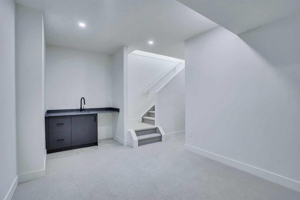 Welcome to your dream home in the amazing neighborhood of Capitol Hill. This brand-new, premium south-facing corner unit townhouse blends modern elegance with everyday comfort. With over 1,800 Sq Ft of finished living space, you’ll enjoy open-concept design, high ceilings, and oversized windows that fill each room with natural light. The gourmet kitchen showcases quartz countertops, high-end appliances, and custom cabinetry – perfect for cooking and entertaining. Upstairs, the primary suite features a luxury ensuite and large windows with downtown views. The fully finished basement adds a recreation room with wet bar, spacious bedroom, and full bath. Just minutes from downtown, SAIT, U of C, Confederation Park, restaurants, and cafes, this home delivers the ultimate urban lifestyle in a quiet residential setting.