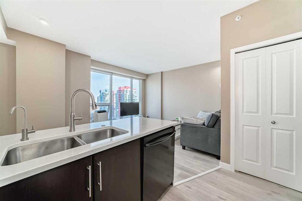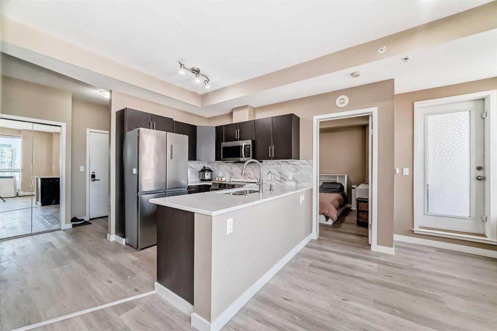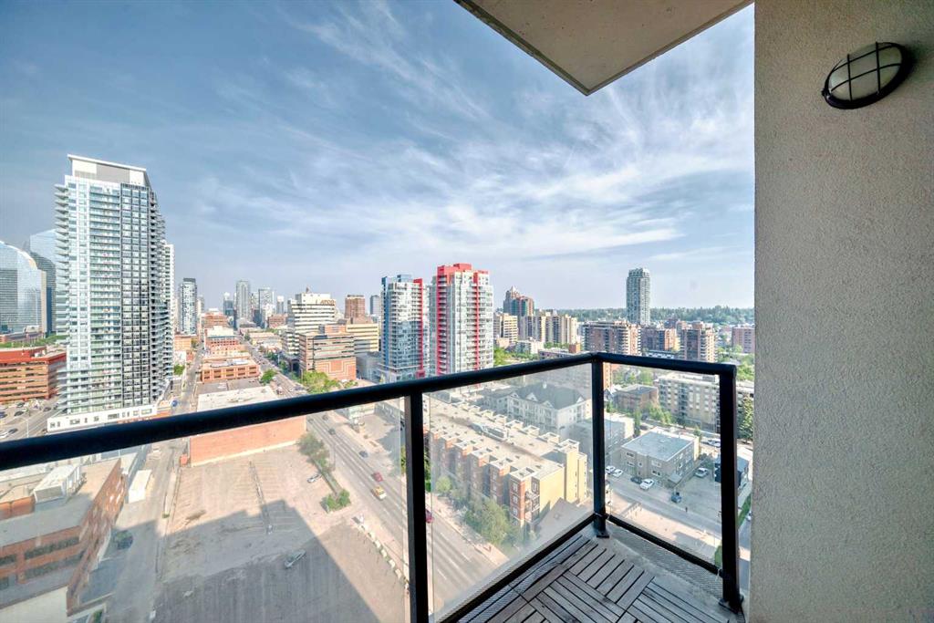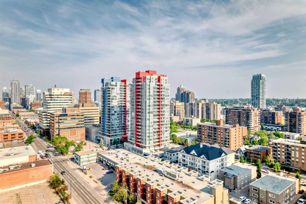 This 1-Bedroom plus office/den space Condo in the Heart of Calgary's Beltline. Welcome to this beautifully appointed 1-bedroom and den condo, ideally located on the 18th floor, with views, in the vibrant Beltline community of Calgary. I've seen more condos than I can remember, but this is one of my favourite floor plans. The kitchen has everything you need and the space to make a full dinner: SS appliances, including an oversized double-door refrigerator, Quartz counters, and ample counter space. Newer luxury vinyl plank flooring throughout, and large windows allow the natural light to cascade in and offers you a beautiful view of the Calgary city skyline. There's a space for an office, and you can relax on your private balcony and enjoy morning coffees or dinners with the view. Just steps away on the back side of the building is a Major grocery store, a Co-op, Asian and organic grocery options. Conveniently located to famous 17th Ave in Calgary, which offers the best dining options for the Calgary Food Scene. Don’t forget to take advantage of the free downtown light rail system, which is conveniently located mere blocks away from the apartment. Located steps away from the Bow River, you’ll enjoy easy access to scenic strolls, cycling, walking, and nearby parks such as the famous Princess Island Park. This condo comes with one titled underground parking stall #260; your vehicle is protected year-round. The building also offers secure access, providing residents with peace of mind. The gym is on the second floor. Condo fees include heat, water, and electricity. The building has security cameras and 4 main elevators for ease of access. THIS CONDO HAS EVERYTHING YOU NEED TO MAKE IT AN IDEAL 1ST HOME OR FOR AN INVESTMENT. Pets allowed with approval.