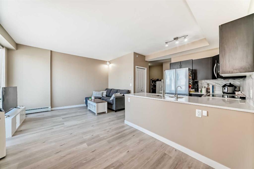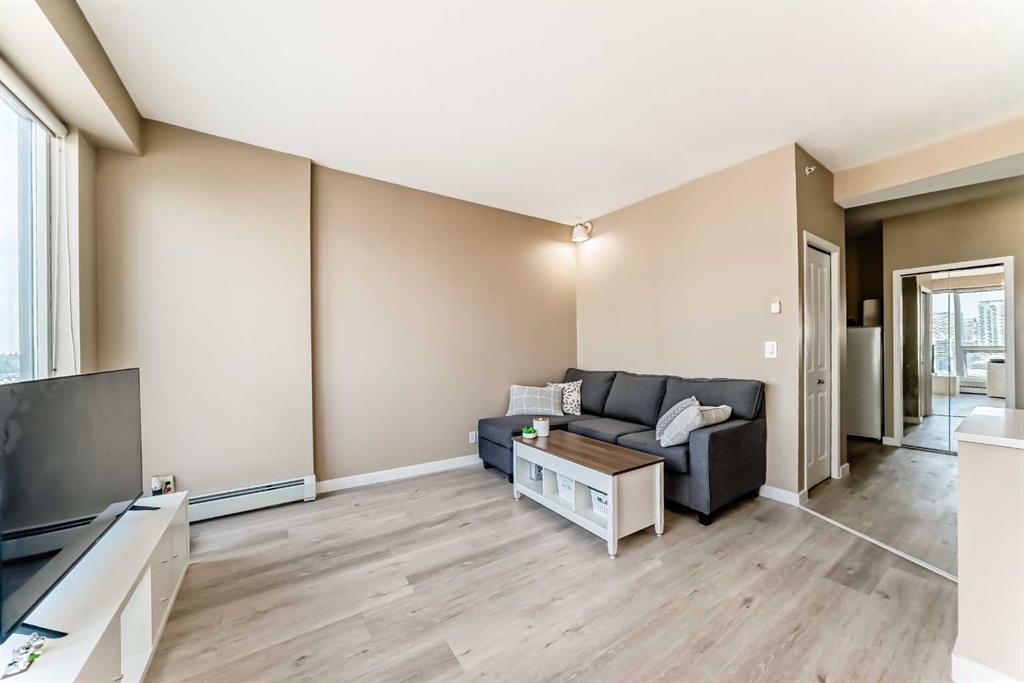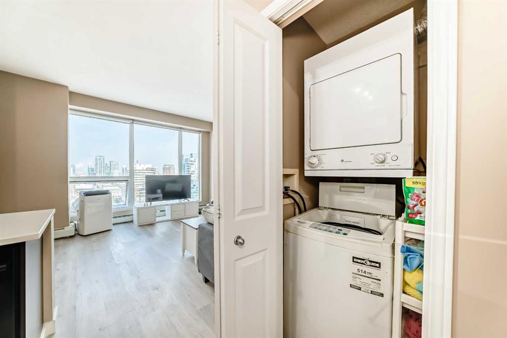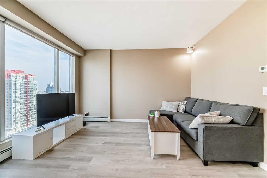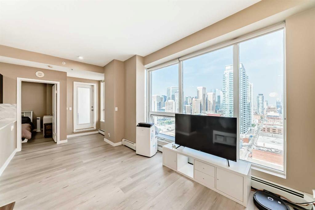 This 1-Bedroom plus office/den space Condo in the Heart of Calgary's Beltline. Welcome to this beautifully appointed 1-bedroom and den condo, ideally located on the 18th floor, with views, in the vibrant Beltline community of Calgary. I've seen more condos than I can remember, but this is one of my favourite floor plans. The kitchen has everything you need and the space to make a full dinner: SS appliances, including an oversized double-door refrigerator, Quartz counters, and ample counter space. Newer luxury vinyl plank flooring throughout, and large windows allow the natural light to cascade in and offers you a beautiful view of the Calgary city skyline. There's a space for an office, and you can relax on your private balcony and enjoy morning coffees or dinners with the view. Just steps away on the back side of the building is a Major grocery store, a Co-op, Asian and organic grocery options. Conveniently located to famous 17th Ave in Calgary, which offers the best dining options for the Calgary Food Scene. Don’t forget to take advantage of the free downtown light rail system, which is conveniently located mere blocks away from the apartment. Located steps away from the Bow River, you’ll enjoy easy access to scenic strolls, cycling, walking, and nearby parks such as the famous Princess Island Park. This condo comes with one titled underground parking stall #260; your vehicle is protected year-round. The building also offers secure access, providing residents with peace of mind. The gym is on the second floor. Condo fees include heat, water, and electricity. The building has security cameras and 4 main elevators for ease of access. THIS CONDO HAS EVERYTHING YOU NEED TO MAKE IT AN IDEAL 1ST HOME OR FOR AN INVESTMENT. Pets allowed with approval.