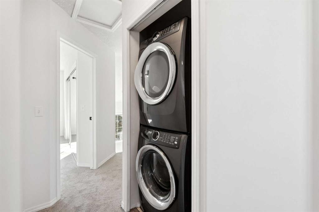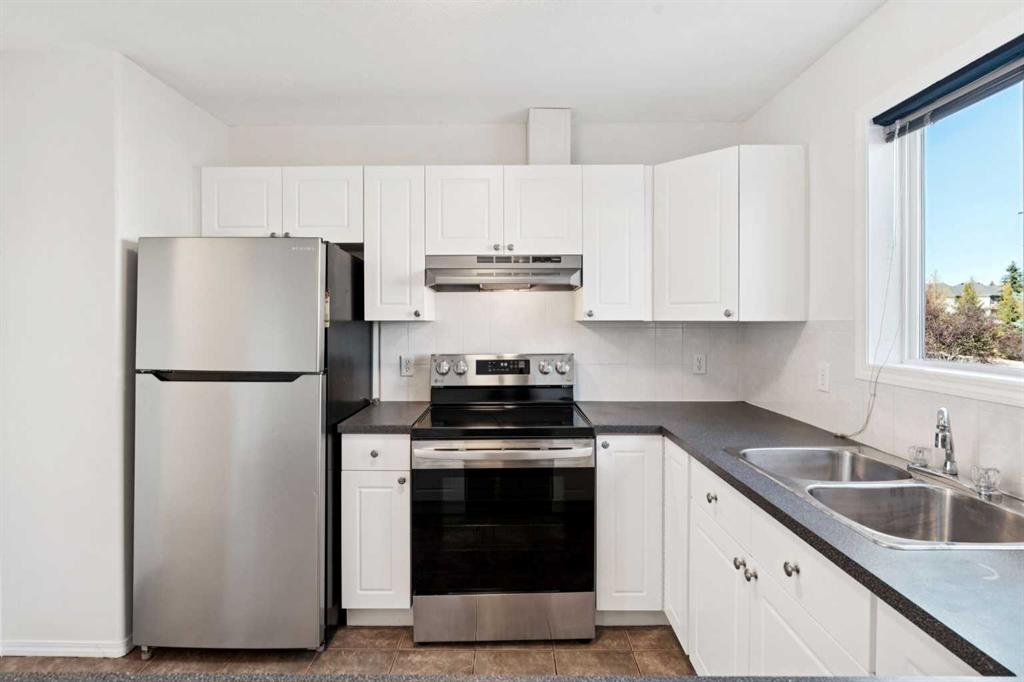 Welcome to the Edge at Rocky Ridge Ranch- a sunny, well managed townhouse complex with LOW CONDO FEES in NW Calgary. This 3 bedroom, 2.5 bath townhouse is tucked away in one of the best parts of Rocky Ridge- close to the exclusive family-friendly Home Owners Association- where you can enjoy tennis, paddle boating, skating and more. The unit includes a tandem garage and private driveway- ideal for families that have multiple vehicles and require seasonal storage. The stove, dishwasher, hood fan and carpet are all BRAND NEW and newer stacked washer and dryer can be conveniently found upstairs. The layout speaks for itself... enjoy family dining just off the kitchen and relish in the cozy living quarters with a gas fireplace and plenty of space for large, plush furniture. Upstairs are three good sized bedrooms and two full bathrooms- freshly painted. The back composite deck, where you can enjoy year round barbecuing, has recently been replaced and is surrounded by colourful trees and friendly neighbours. The Rocky Ridge YMCA, LRT, transit and many other restaurants and services are only minutes away. Don't miss out on the opportunity to own in one of Calgary's best northwest communities! Book your private showing today. OPEN HOUSE - SATURDAY, OCTOBER 25, 11:30 - 1:30.