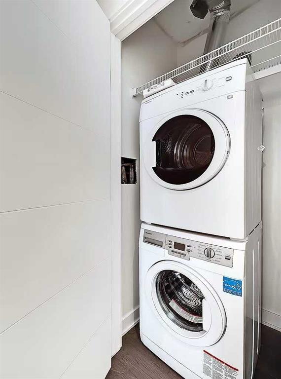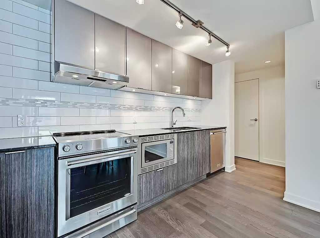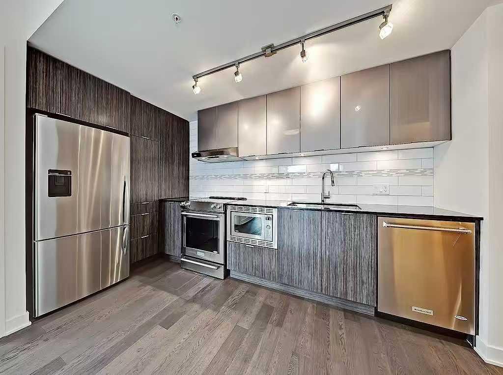 SOUTHWEST-facing 2-bed, 2-bath condo in upscale VOGUE w/ stunning CITY, RIVER & MOUNTAIN VIEWS from the 20th floor! Sun-drenched & open concept, this bright 2-bed/2-bath unit is filled with natural light & has engineered hardwood flooring in the main areas. Two-tone cabinets w/ modern hardware & under cabinet lighting, quartz counters, subway tile backsplash, dual basin undermount S/S sink, & S/S appliances, including a built-in Panasonic microwave, Kitchenaid stove w/ flat cooktop & dishwasher, & a Fisher Paykal fridge can be found in the open kitchen. The open main living area also features painted ceilings, floor-to-ceiling windows, & a sunny balcony w/ gas line for a BBQ & panoramic views. Flanked bedrooms offer extra privacy for roomates or frequent guests as they share no walls with each other. Primary suite features plush carpet, large windows w/ panoramic views, a generous closet, & a 4-pc ensuite w/ hexagon tile floors, modern vanity, quartz counter, undermount sink w/ modern faucet, tile backsplash, & fully tiled tub/shower. The 2nd bedroom also has plush carpet, a generous closet, large windows and quick access to the main 3-pc bath w/ hexagon tile floors, modern vanity, quartz counter, undermount sink w/ modern faucet, & oversized glass shower w/ full height tile. Complete w/ in-suite laundry, titled indoor parking and extra storage in the heated parkade. VOGUE is a high-end building w/ a ton of amenities, including central A/C, an elegant formal lobby, full-time concierge, and 36th floor Sky Lounge complete with fitness centre, billiards, large party room w/ kitchen, studio, & multiple rooftop terraces. Surrounded by parks, transit, the LRT, shopping & more, & within walking distance to the downtown core & all Kensington shops & services – this location offers the best urban lifestyle in the Downtown Commercial Core.