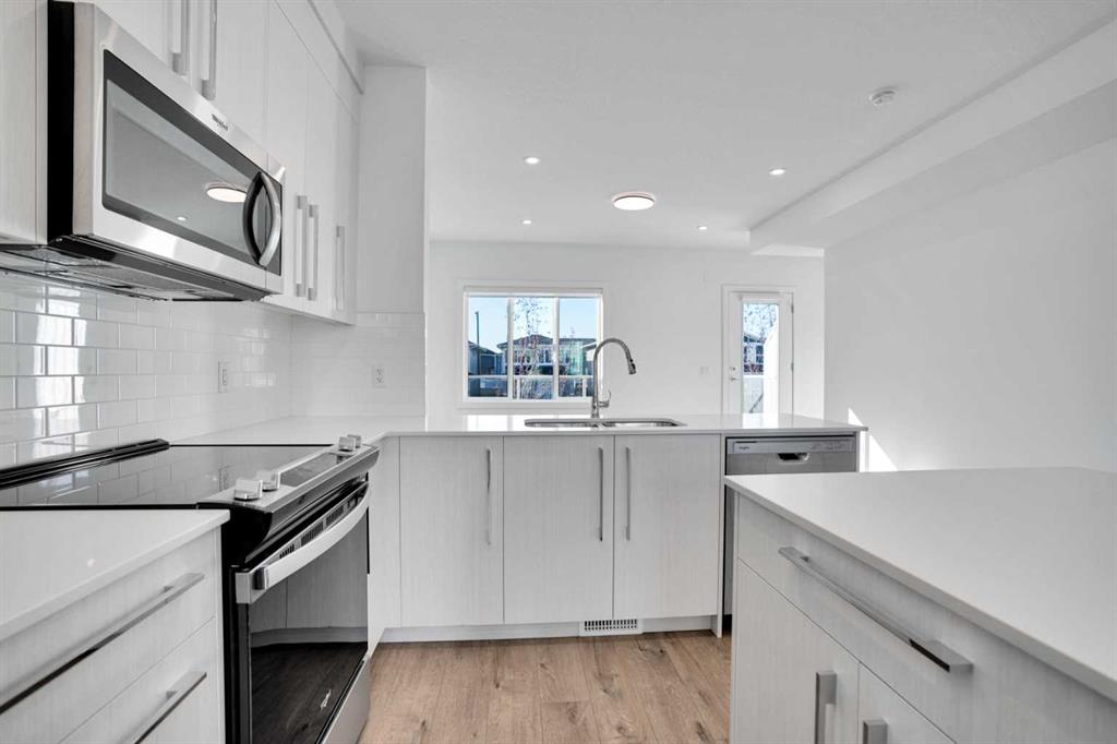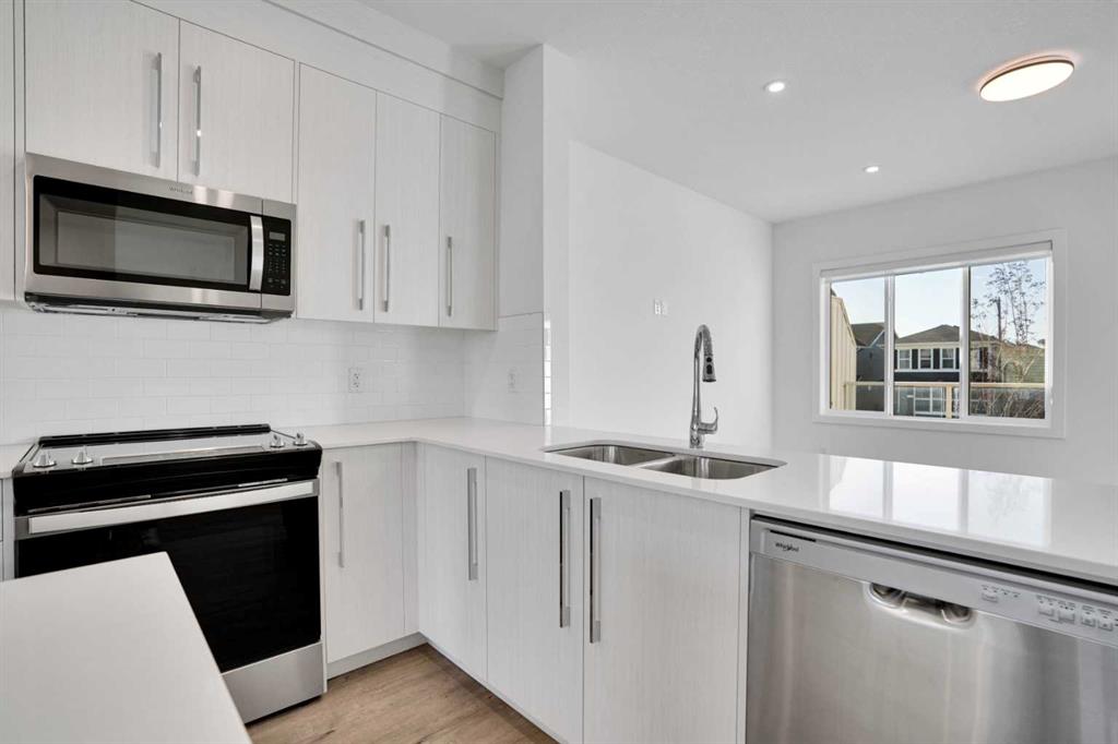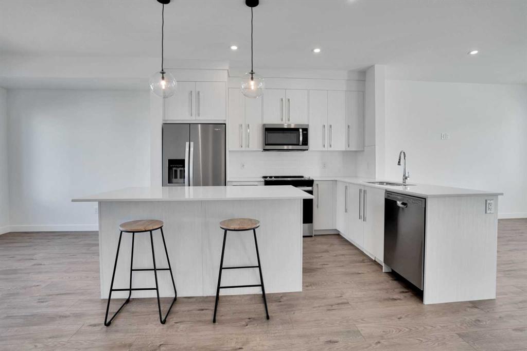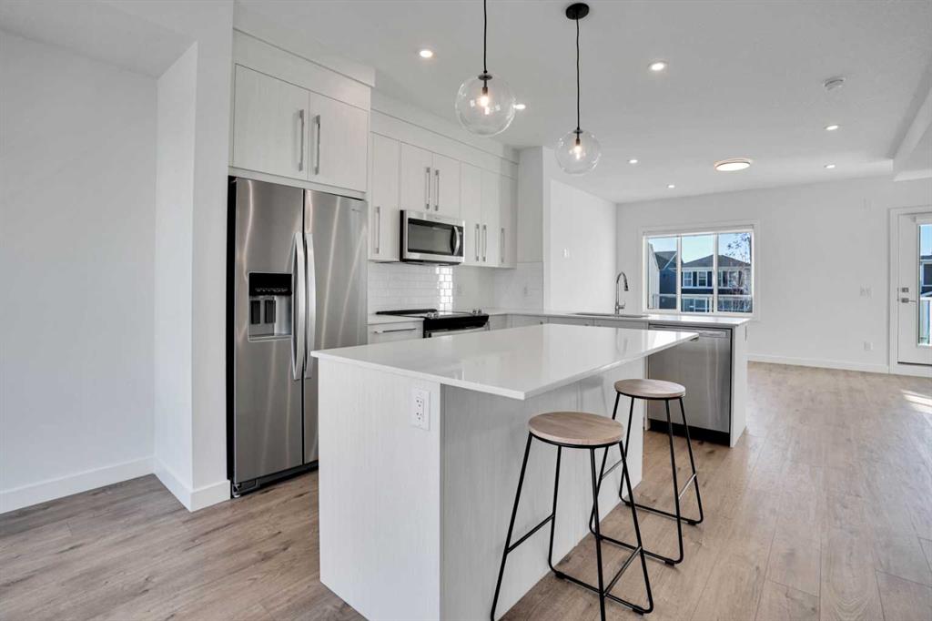 Back in Market due to financing. Aberdeen Townhomes by Truman! Experience the charm of this exquisite 4-Bedroom Townhome, nestled in the thriving and vibrant community of Chelsea. This exceptional home offers unparalleled convenience with nearby playgrounds, scenic pathways, and shopping options, all within a welcoming and dynamic neighborhood. Step inside to discover a beautifully designed living space featuring 4 bedrooms, 2.5 bathrooms, and an attached double heated garage. The main floor includes a versatile bedroom that’s ideal for guests or a home office. The interior showcases top-tier finishes and craftsmanship, including elegant Vinyl Plank flooring throughout the main living areas and high ceilings. The gourmet kitchen is a chef’s delight, featuring Full-Height Cabinetry with soft-close Doors and Drawers, a sleek Stainless Steel Appliance package, and a storage pantry. The Eat-Up Bar, highlighted by stunning Quartz Countertops, offers a stylish spot for casual dining and entertaining. The Primary Bedroom serves as a serene retreat, complete with a spacious walk-in Closet and a luxurious 4-piece Ensuite bathroom. The upper level is thoughtfully designed with two additional Bedrooms, a 4-piece Main Bathroom, and convenient upper-floor Laundry, ensuring comfort and practicality for the entire family. Bright and airy, this move-in-ready home is an invitation to elevate your living experience and embrace the refined Truman lifestyle. Seize the opportunity to make this exceptional townhome yours today!