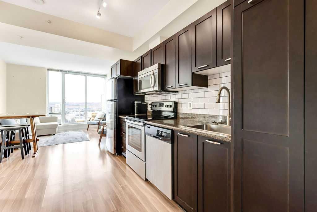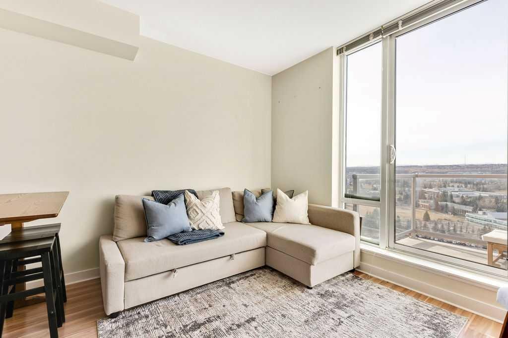 Breathtaking panoramic city/mountain views! Voted one of Calgary's top communities this perfectly located 1 bedroom unit in Brentwood is an excellent apartment for investors, students and first time buyers alike. Only a short walk away to Brentwood LRT and University of Calgary as well as a ton of amenities, this unit is situated in an unbeatable location. Featuring a bright and open layout with a large kitchen area, open living/dining area, spacious bedroom, in unit laundry and central AC everything is self contained for maximum convenience. The building features a fitness center, meeting room, underground parking with visitor spots, a storage unit next to the titled parking spot and bicycle storage. Take advantage of this rare opportunity for a top floor unit.