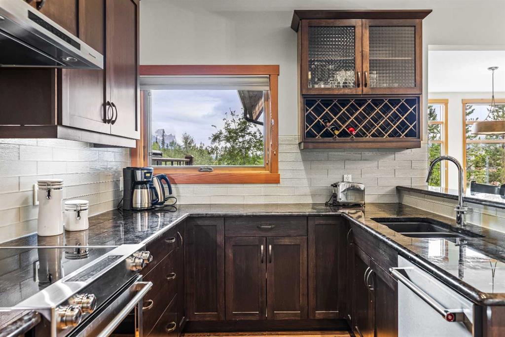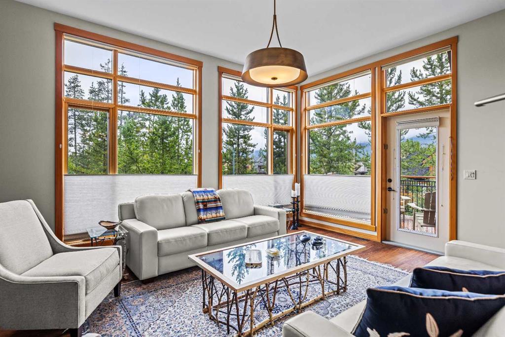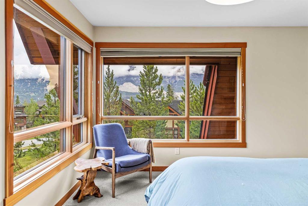 Discover refined mountain living in this beautifully designed multi-level townhome, located in one of Canmore’s most sought-after communities — Three Sisters Mountain Village. Set in a quieter, more private enclave of the neighborhood, this exceptional 4-bedroom, 4-bathroom home offers over 2,870 sq. ft. of thoughtfully planned living space, seamlessly blending luxury, comfort, and the serenity of the Rockies. From the moment you step inside, you’re greeted by expansive mountain views from nearly every room. The open-concept main level is warm and welcoming, featuring a modern chef’s kitchen, elegant dining area, and a bright, airy living room with a cozy fireplace. Sliding doors open onto a private deck — the perfect place to take in the fresh mountain air and breathtaking alpine scenery. A dedicated office space off the main floor adds functionality for remote work or creative pursuits. Upstairs, the primary suite serves as a true retreat with expansive windows, and a spa-inspired 5-piece ensuite complete with a deep soaker tub, dual vanities, and a walk-in shower. The additional bedrooms are spacious and well-appointed, ideal for family, guests, or additional workspace. The fully finished lower level offers a large recreation room — perfect for movie nights, games, or hosting visitors — along with ample storage and access to the attached double car garage. Perfectly positioned just minutes from the new Gateway commercial district and a short walk or ride to world-class biking and hiking trails, this home also offers quick access to the renowned Stewart Creek Golf Course. Whether you're enjoying a quiet morning on the deck or exploring the endless outdoor adventures right at your doorstep, this home provides the ideal balance of privacy, natural beauty, and modern alpine living.